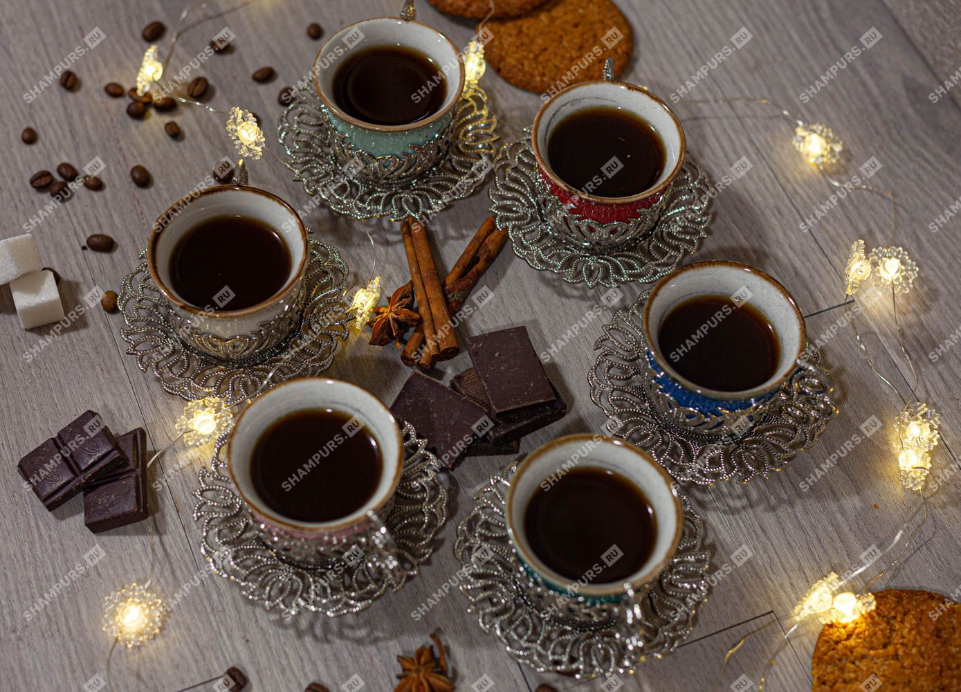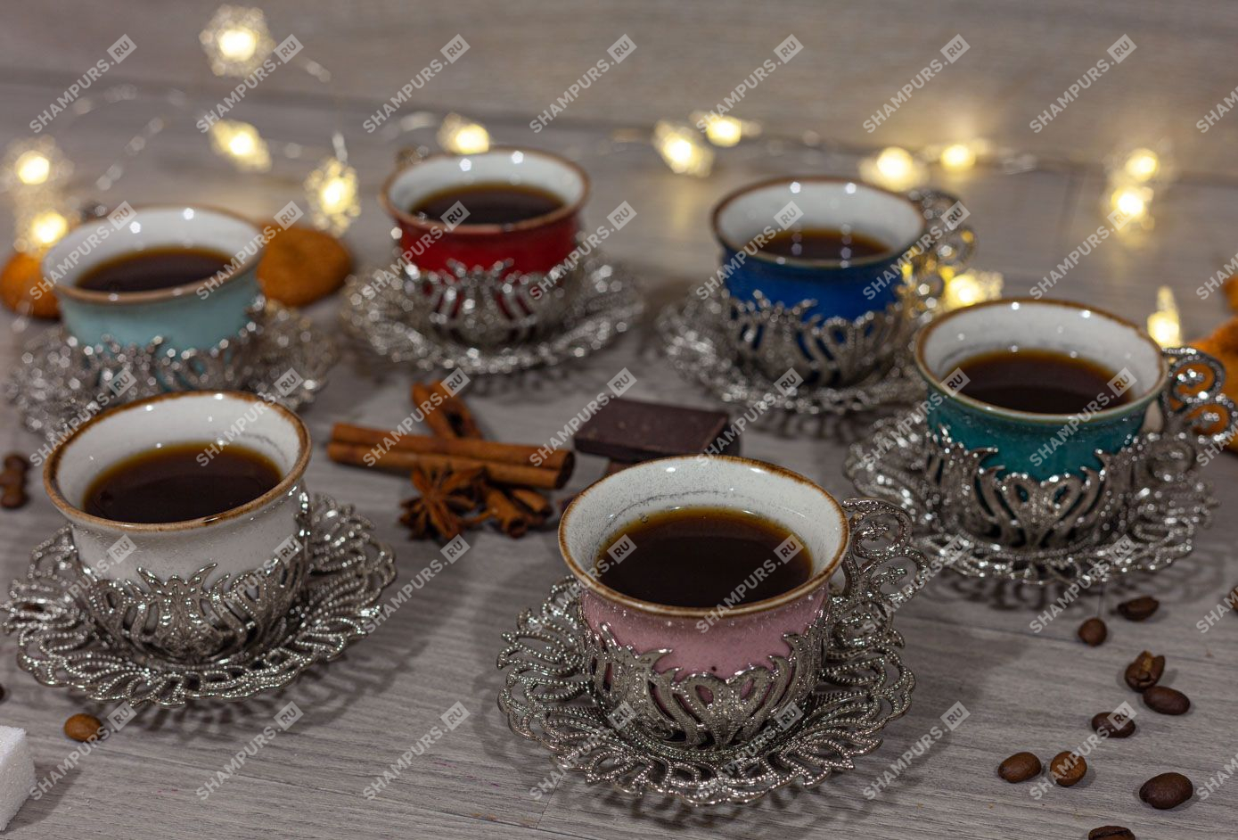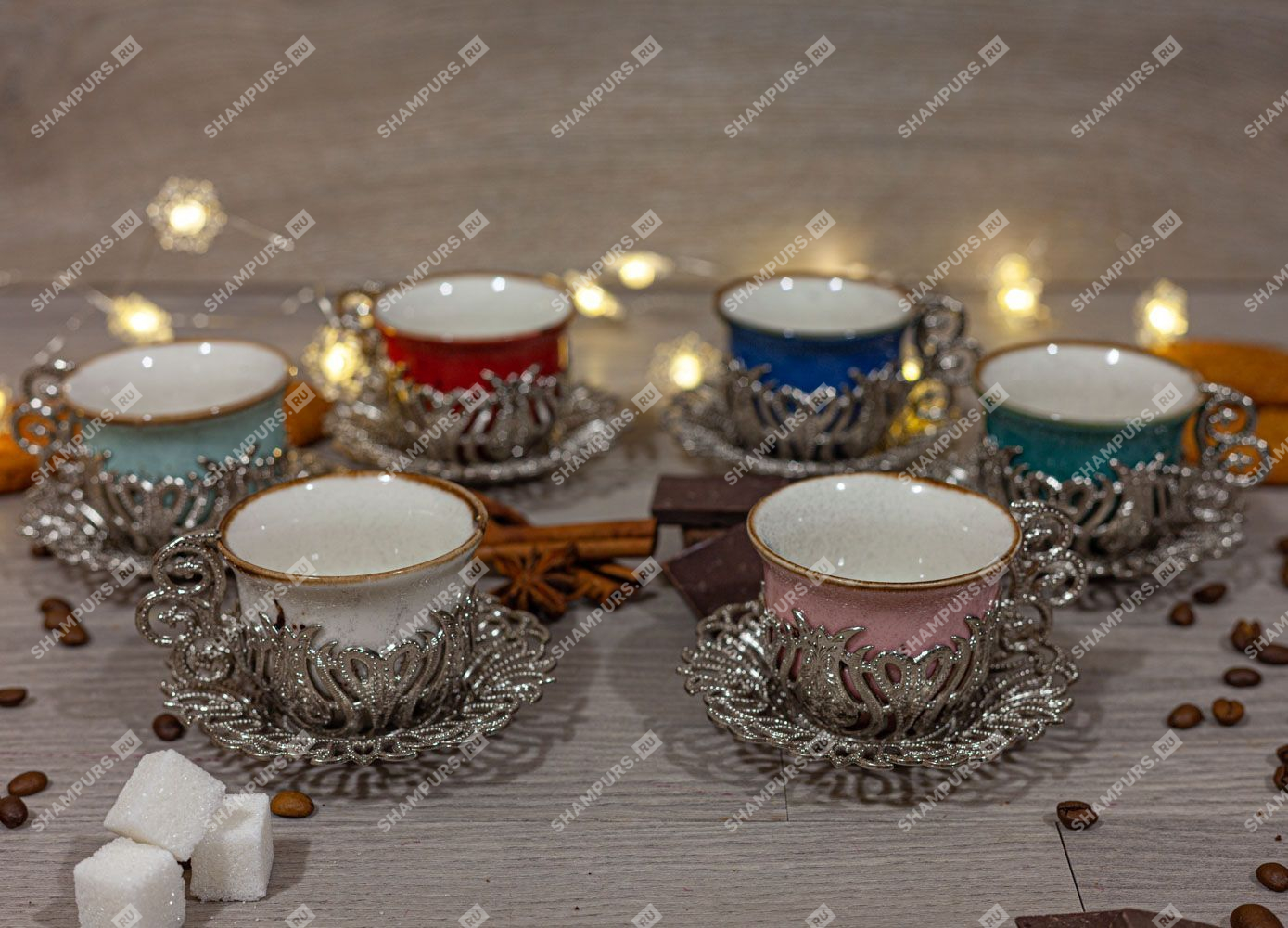 Разноцветный кофейный сервиз на 6 персон Кофейный сервиз на 6 персон.