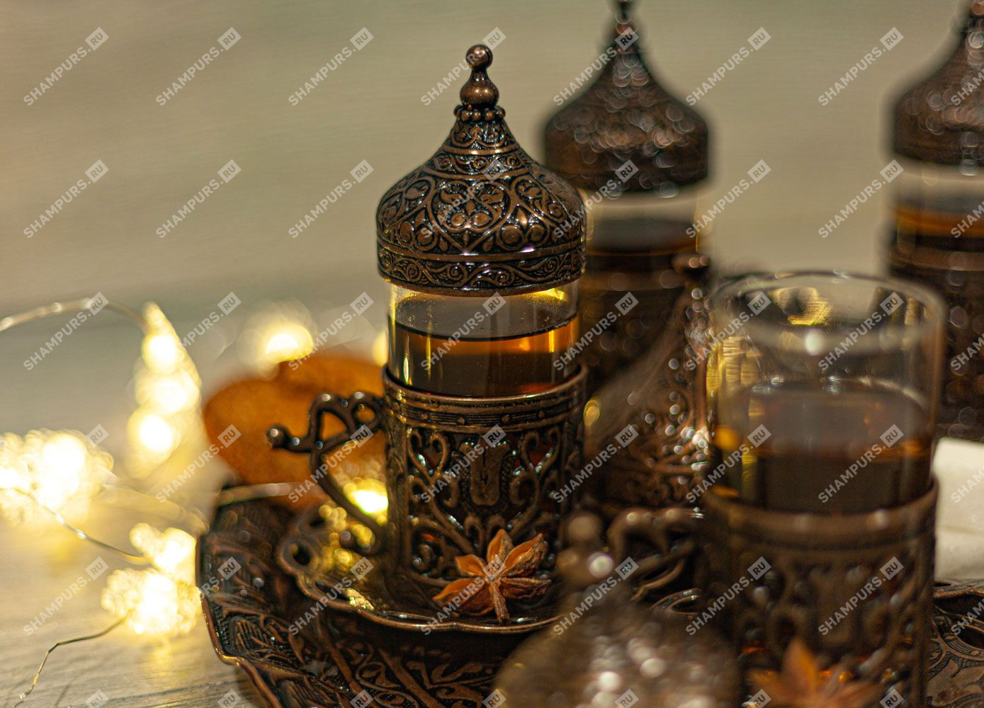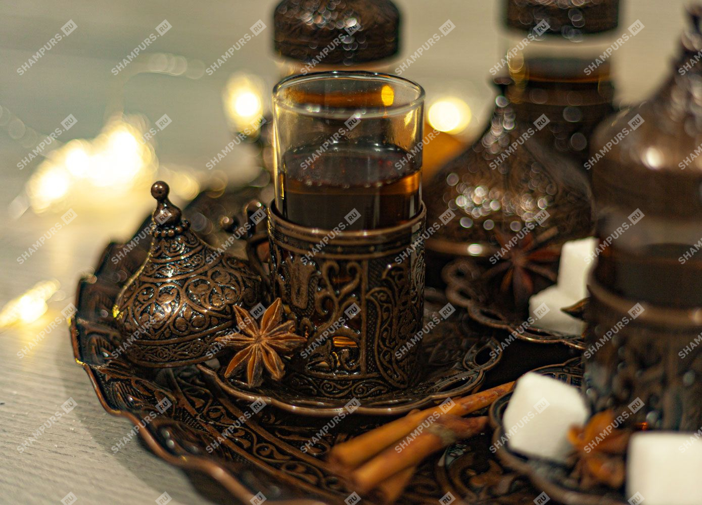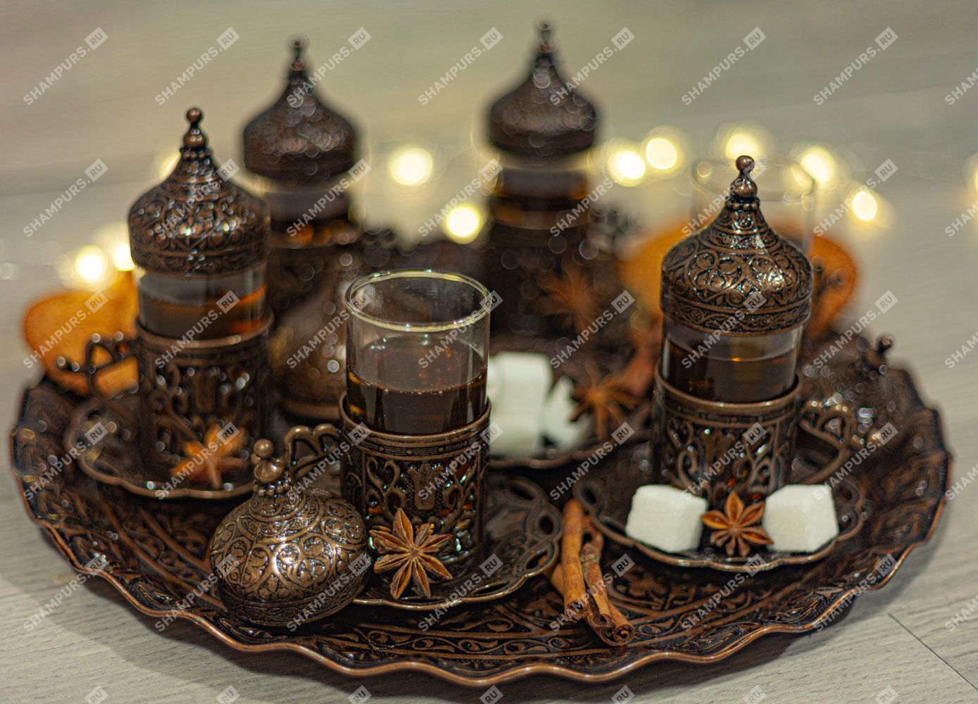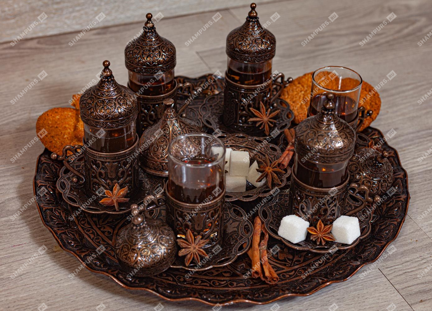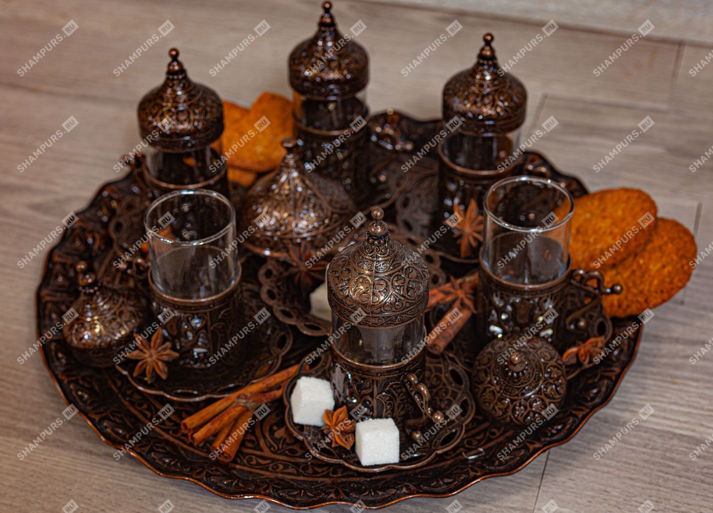 Восточный чайный сервиз на шесть персон с подносом Чайный сервиз стекло+металл на 6 персон (27 предметов).
