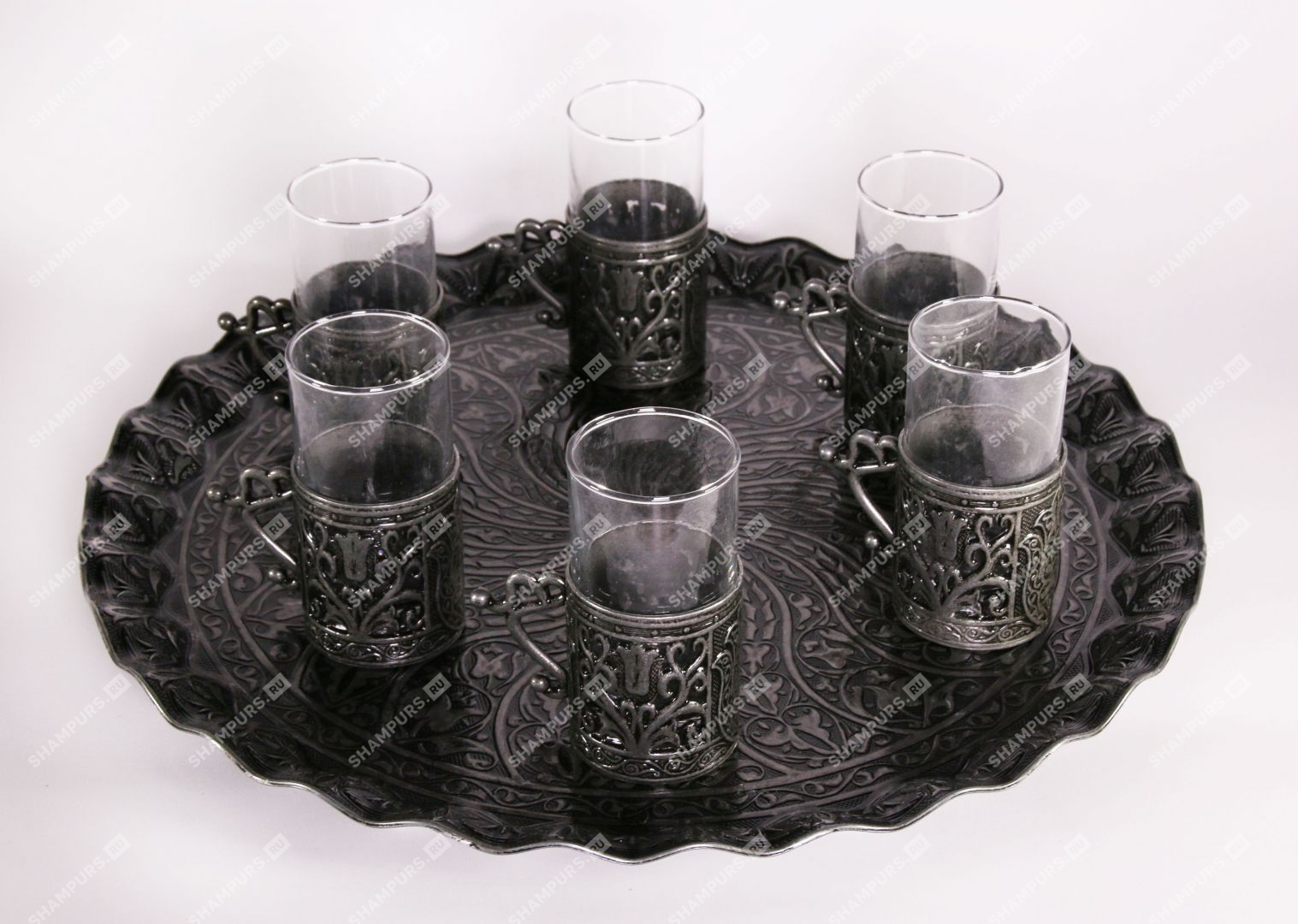 Восточный чайный сервиз на шесть персон с подносом античное серебро Чайный сервиз стекло+металл на 6 персон (27 предметов).