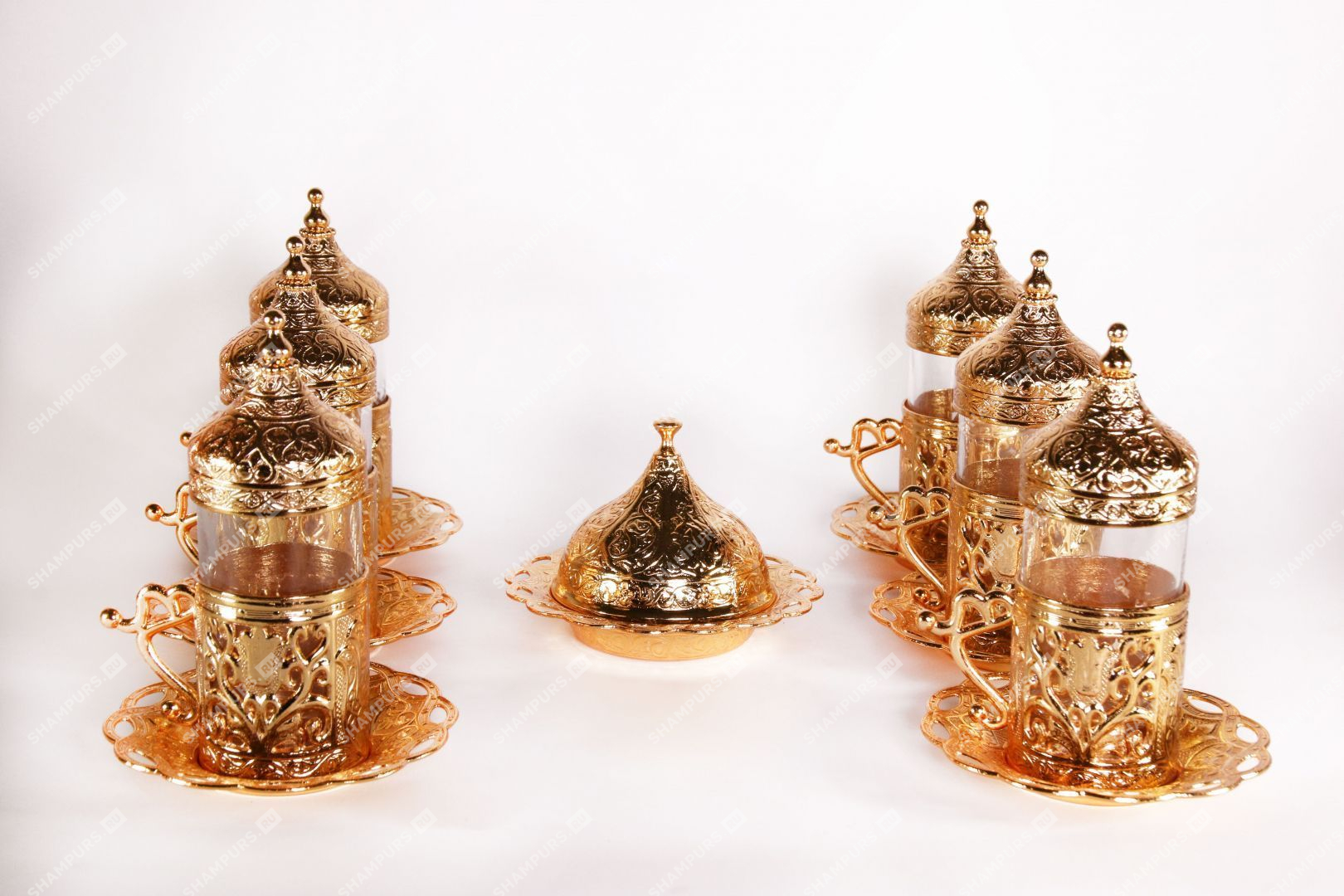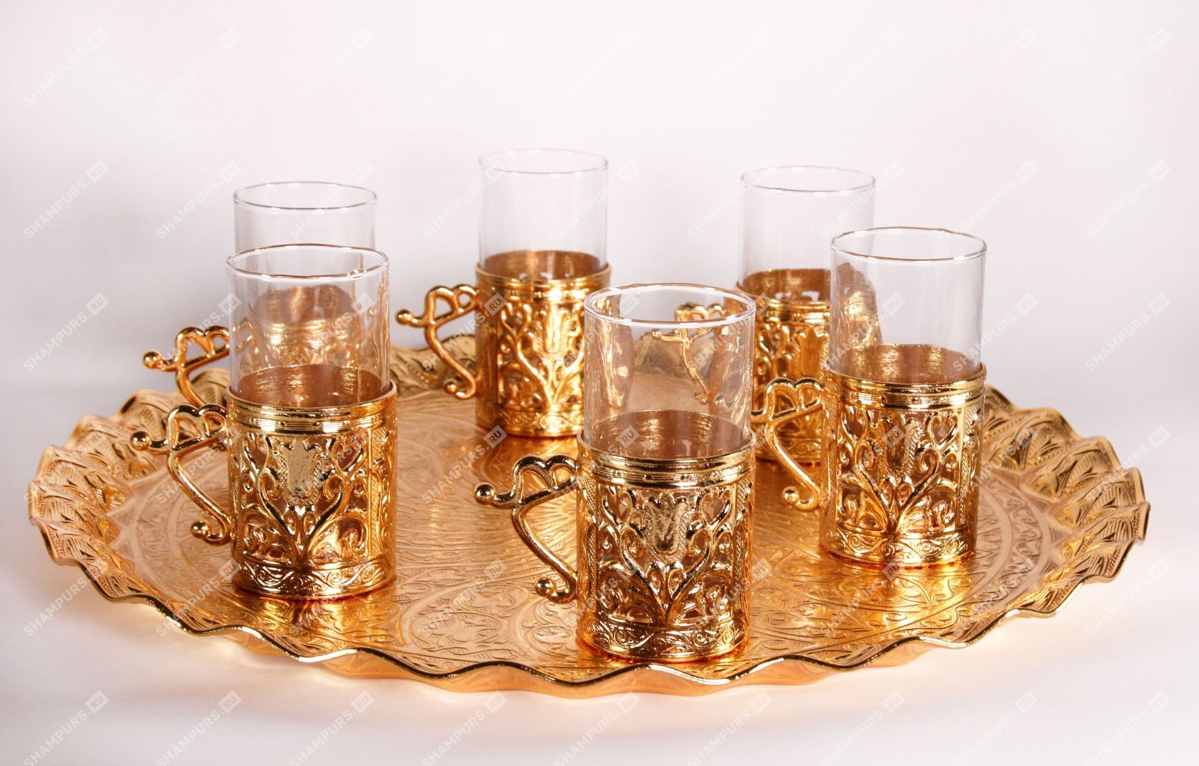 Восточный чайный сервиз на шесть персон с подносом (золото)