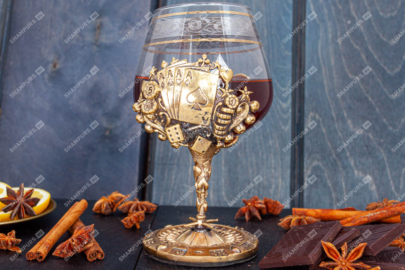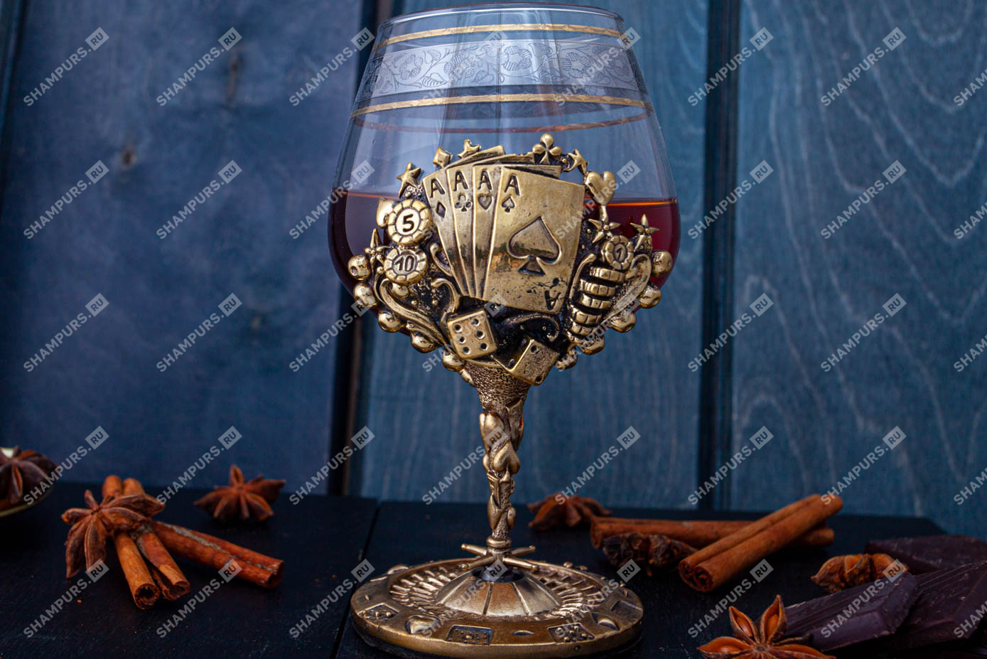 Бокал для коньяка Казино Материалы: латунь, стекло.