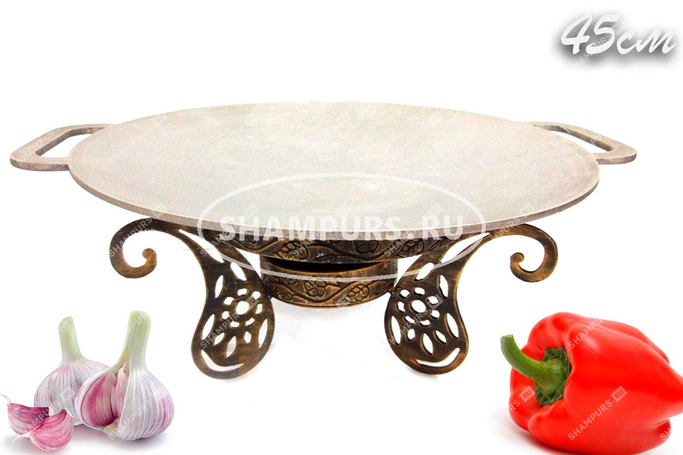 Садж чугунный 42 см на кованой подставке Турецкая Избегать резких перепадов температур, не остужать после готовки в холодной воде.