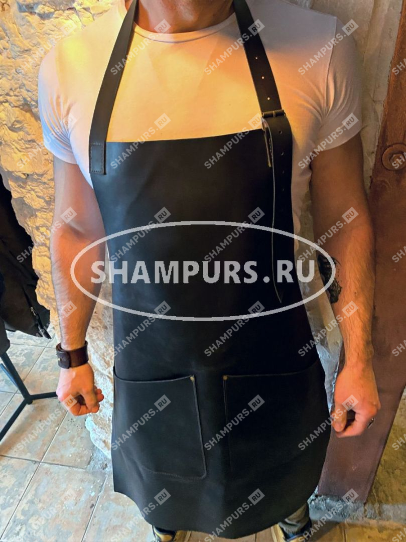 Фартук с двумя карманами на поясе черный
