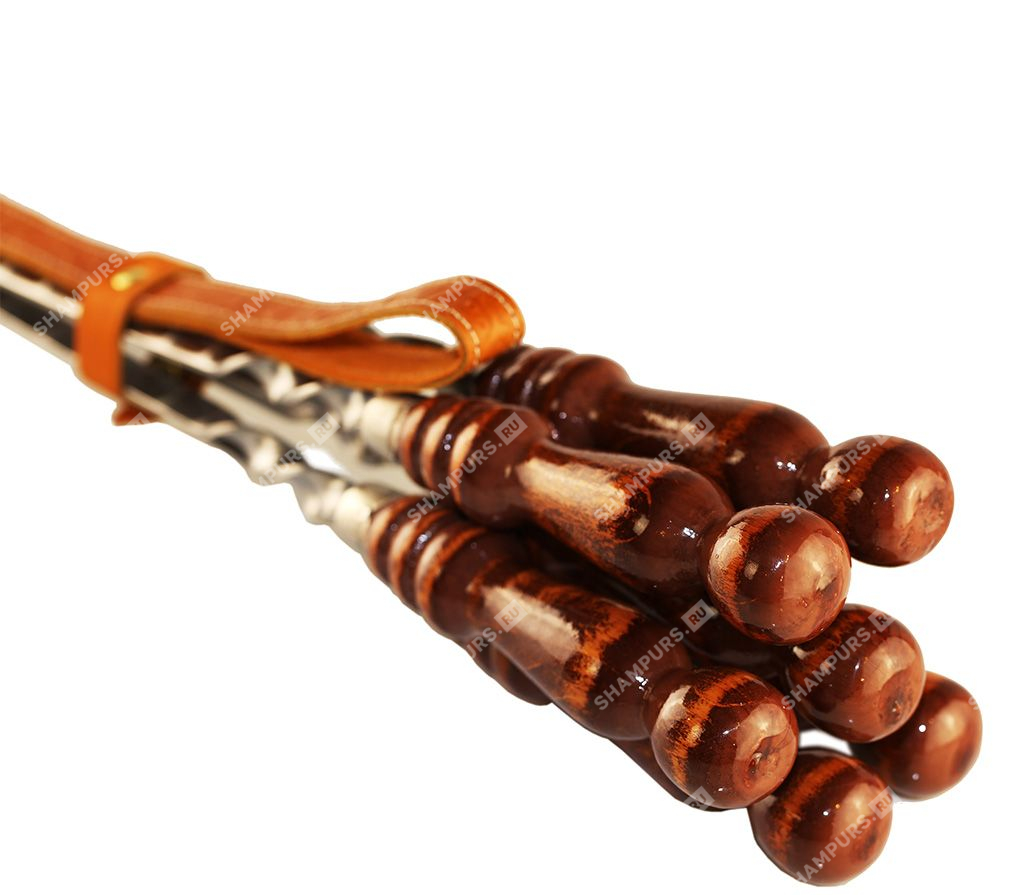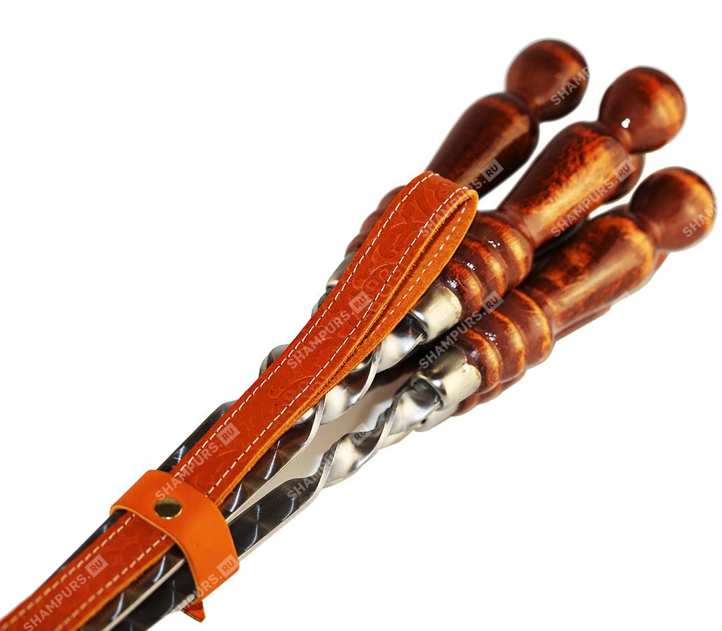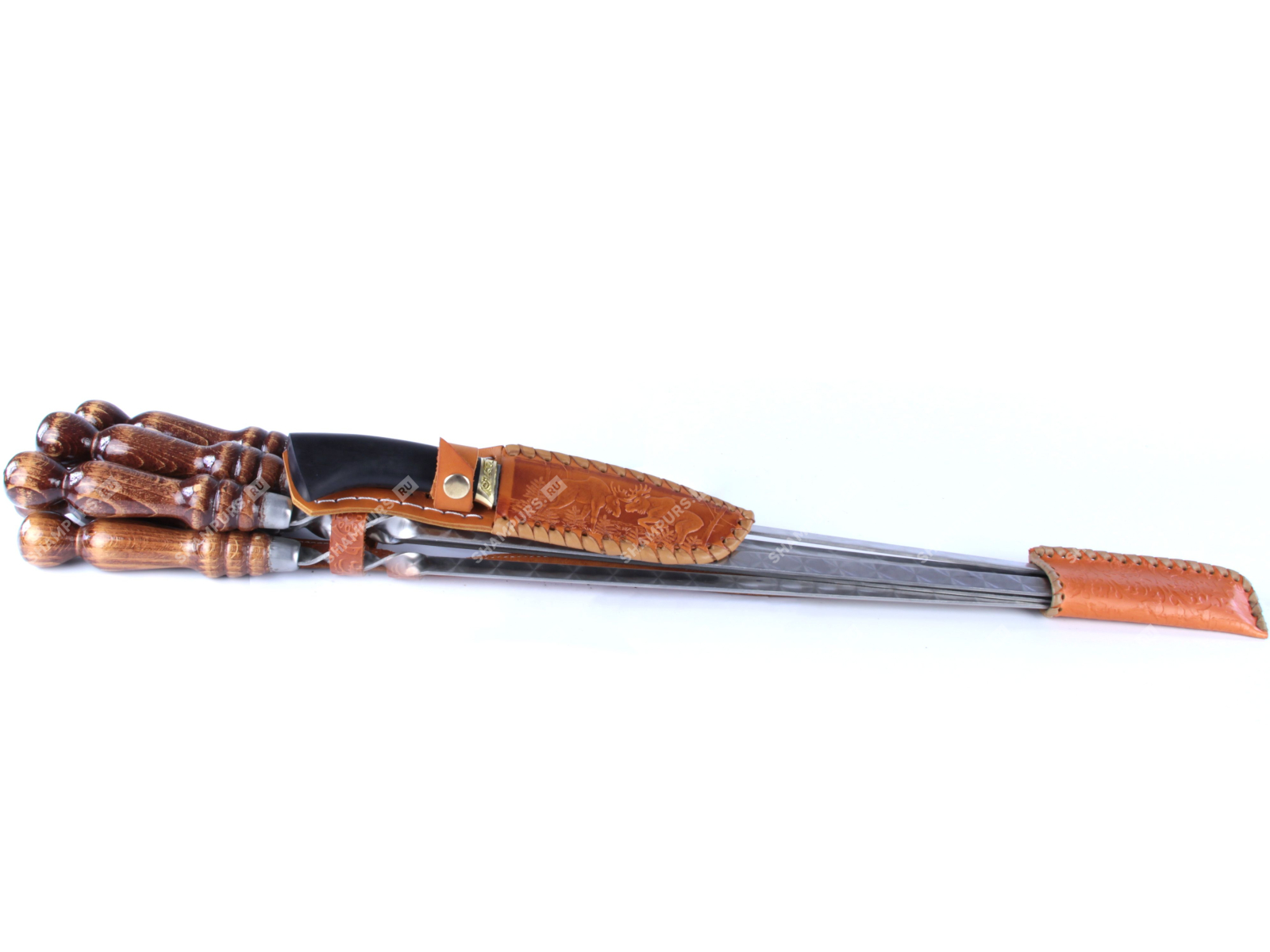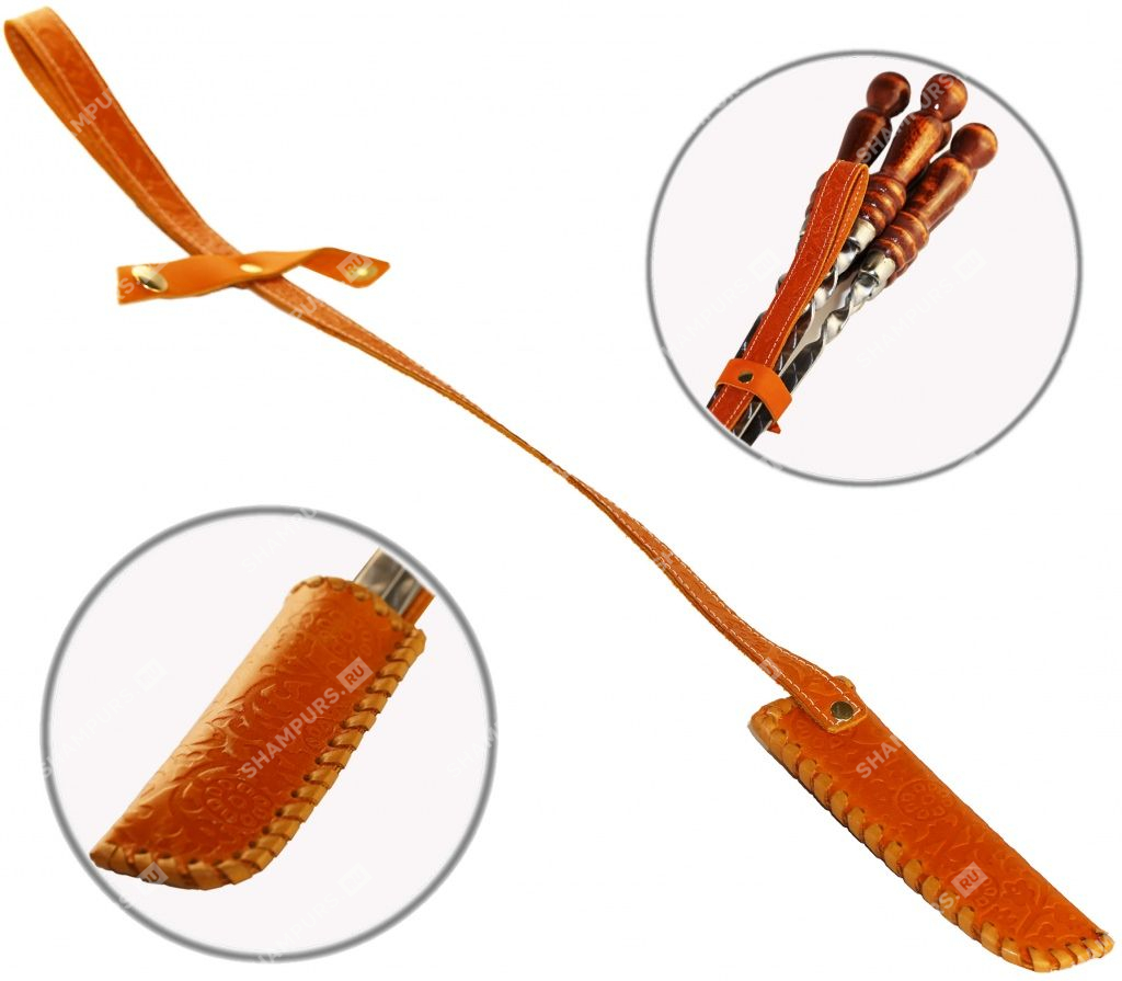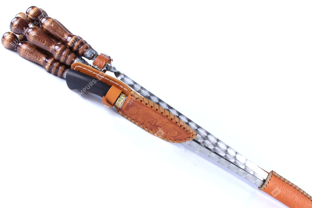 Колчан кожаный c ножом - 6 профессиональных шампуров с деревянной ручкой для люля - кебаб 14мм - 55 см