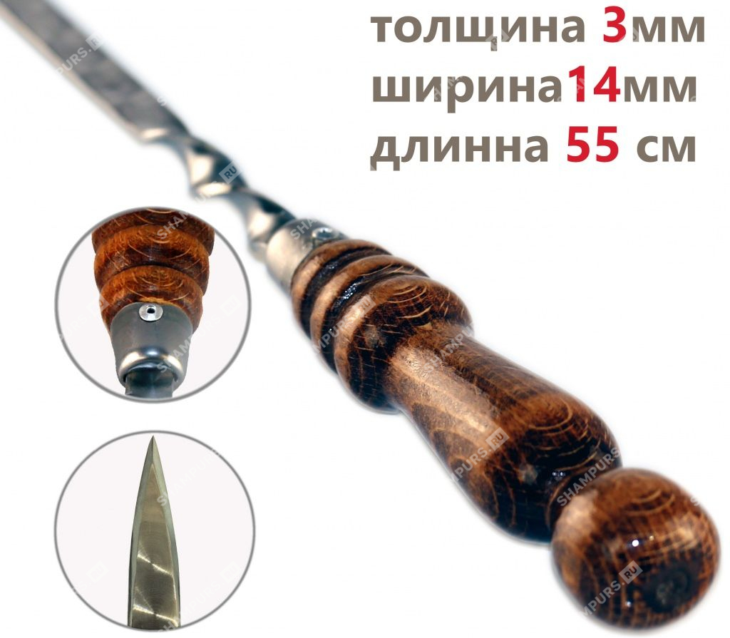 Профессиональный шампур с деревянной ручкой для люля кебаб 14 мм - 55 см