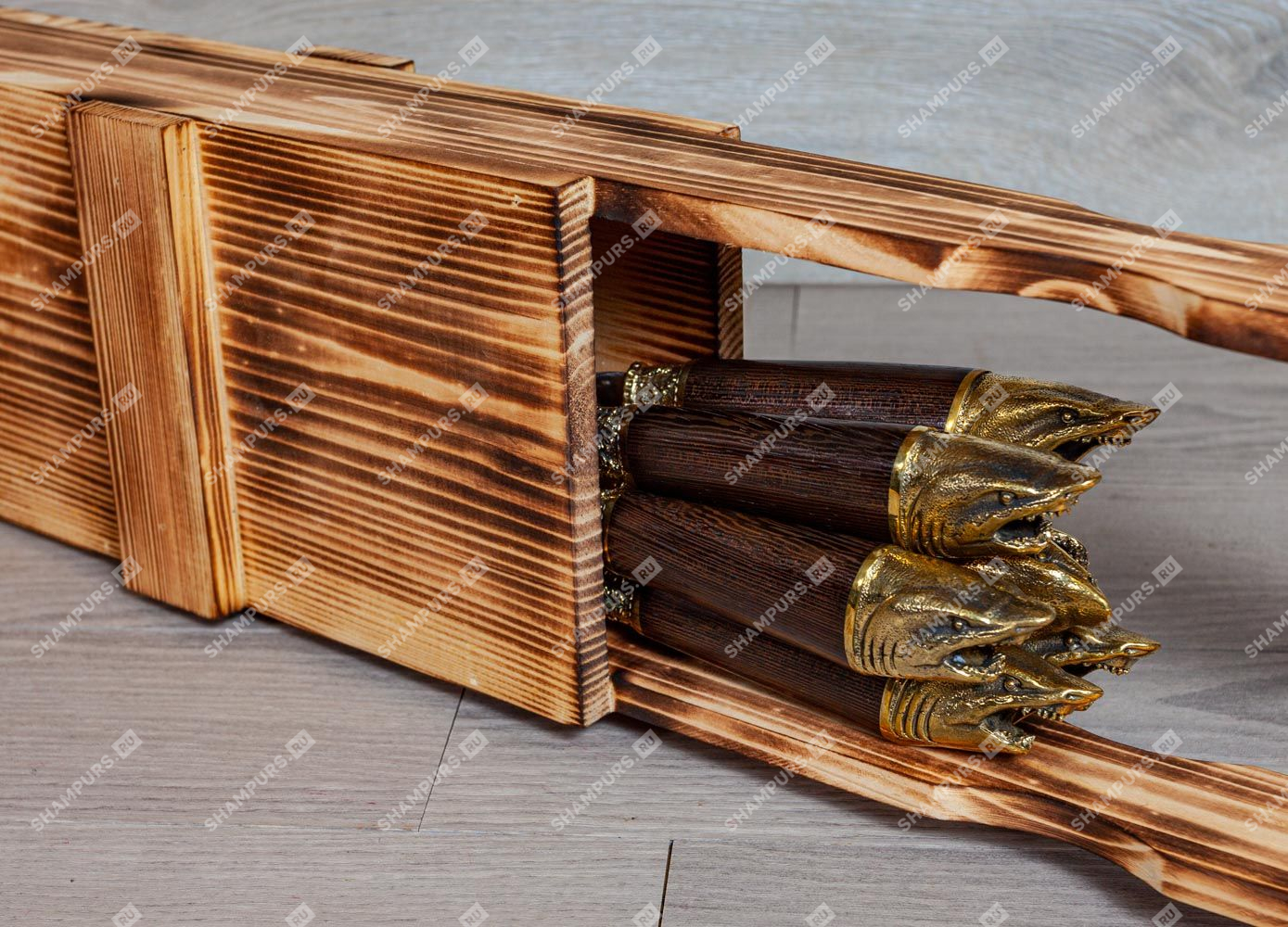 Шампуры (6шт) - латунь, художественное литье, венге, сталь нержавеющая пищевая.