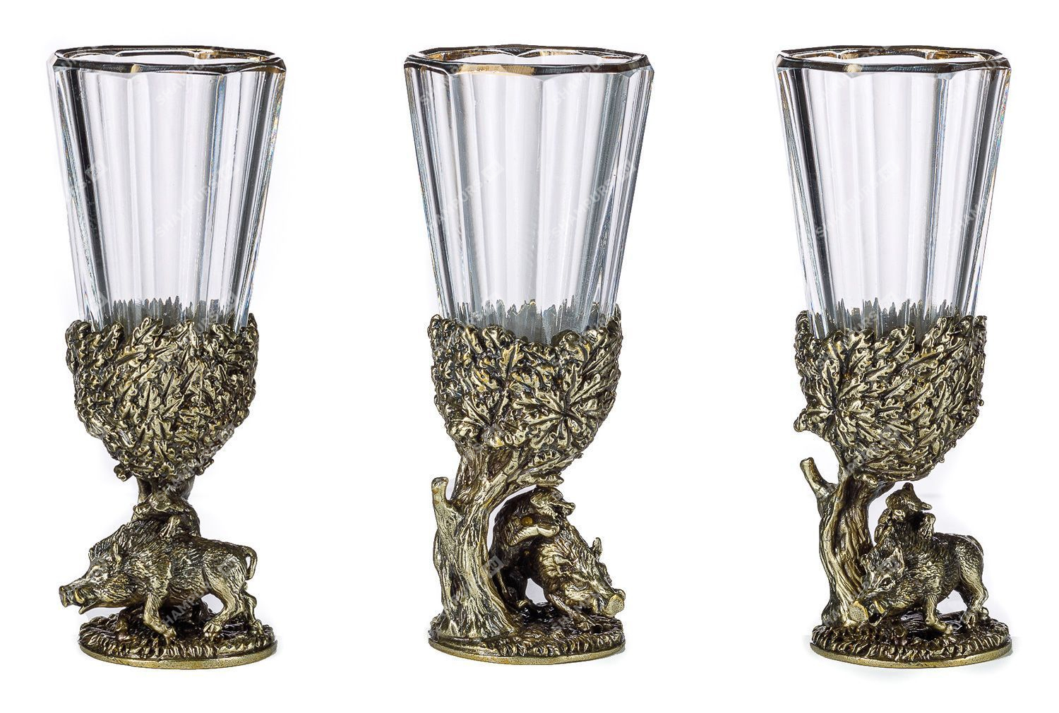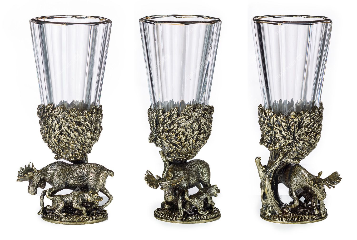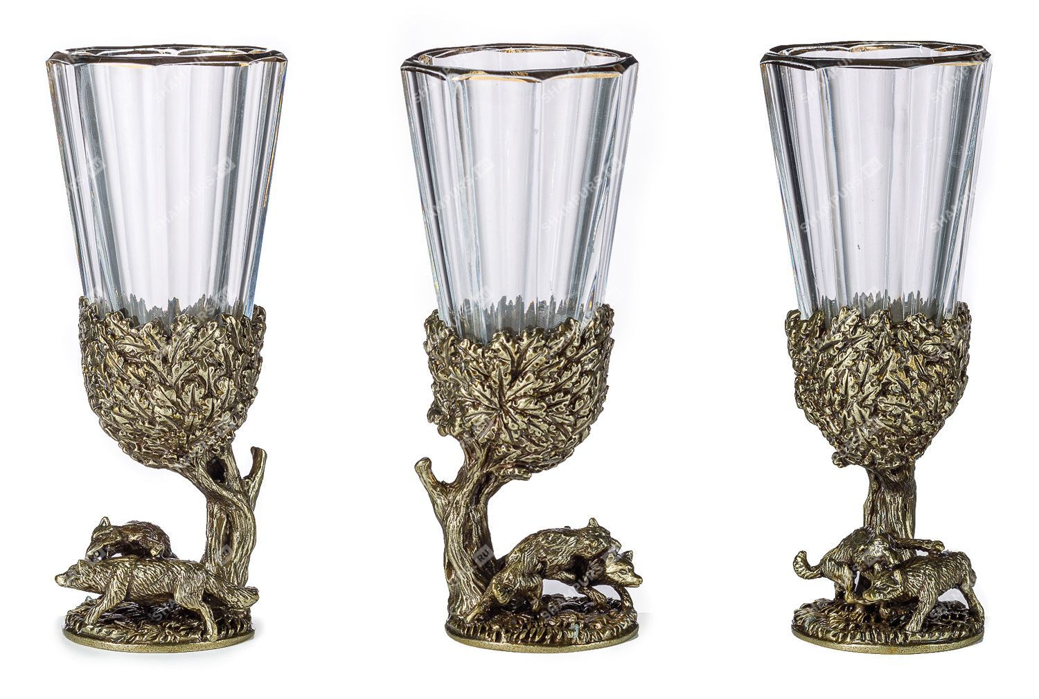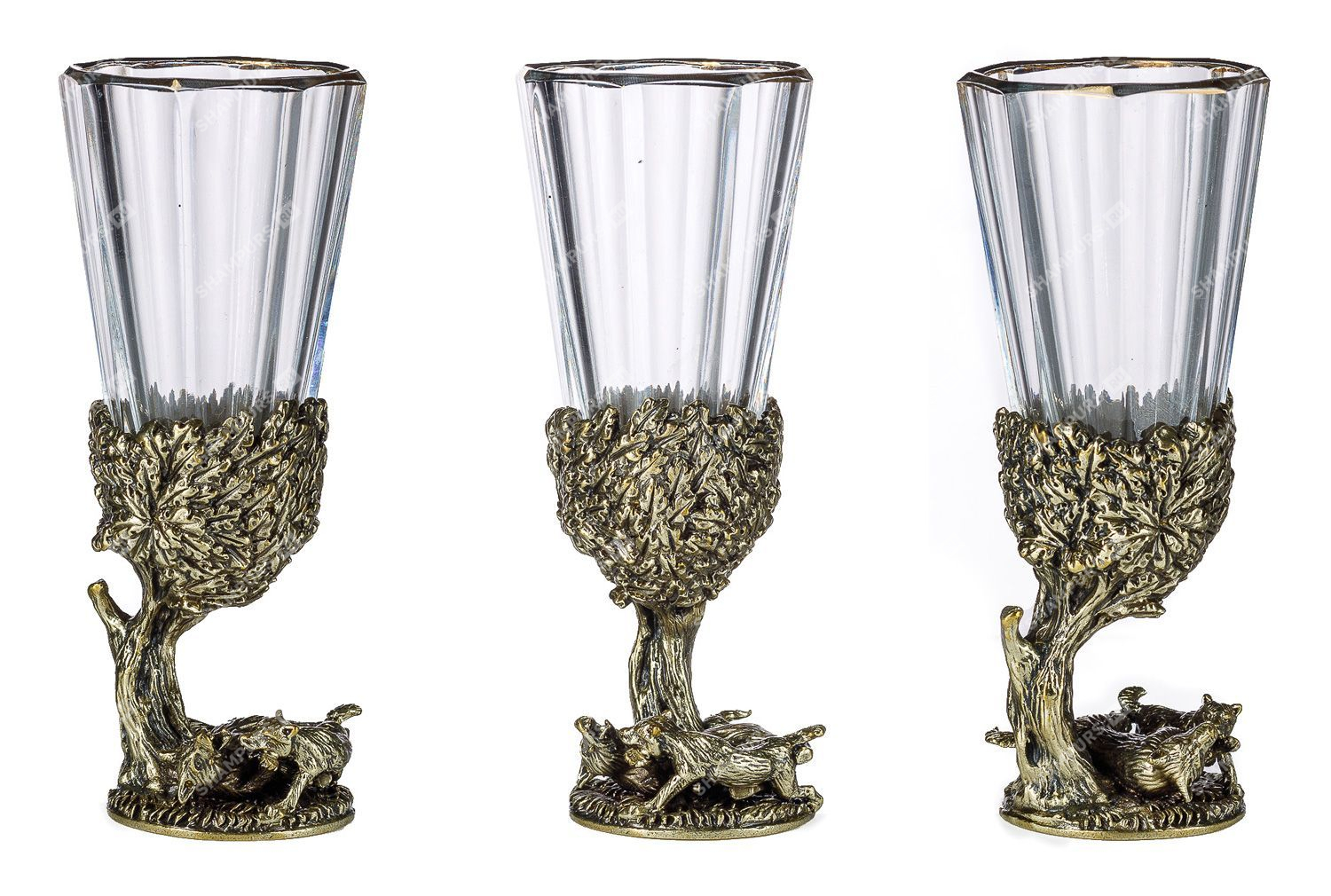 Комплектация: 6 рюмок (хрусталь), основание (латунь)