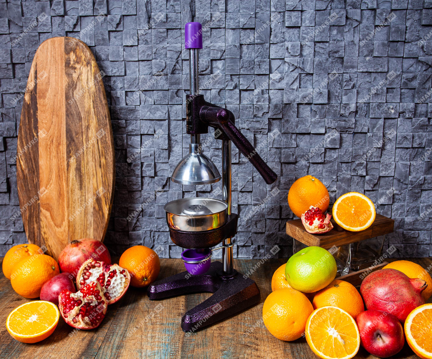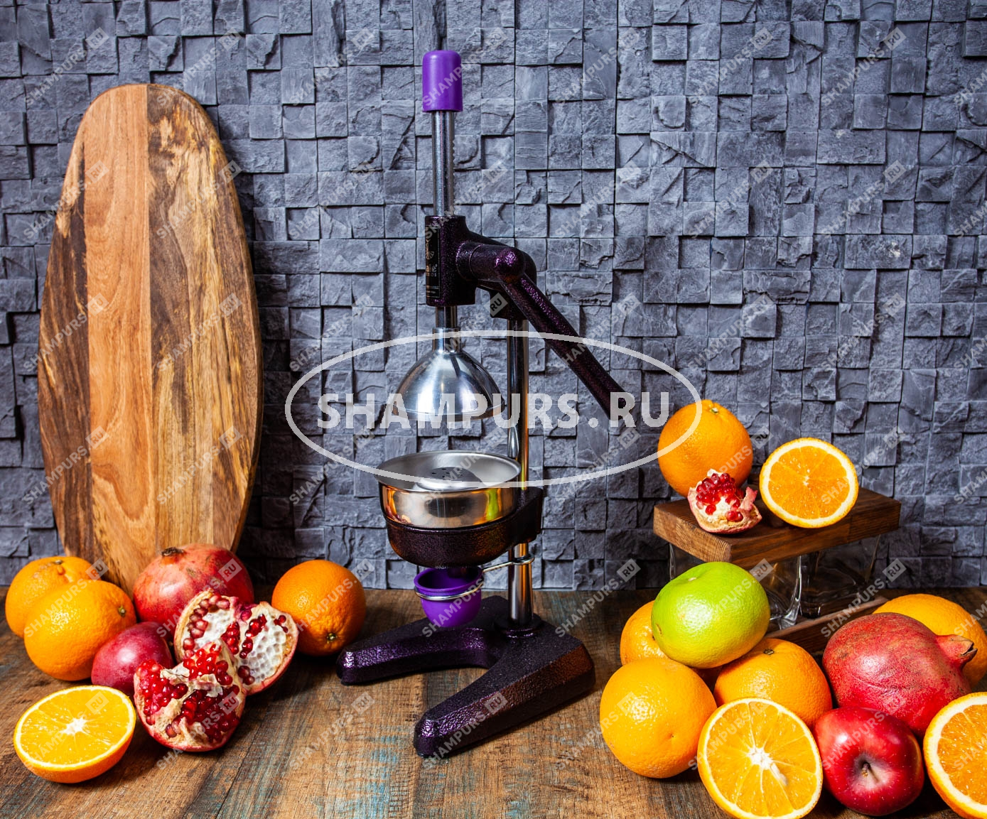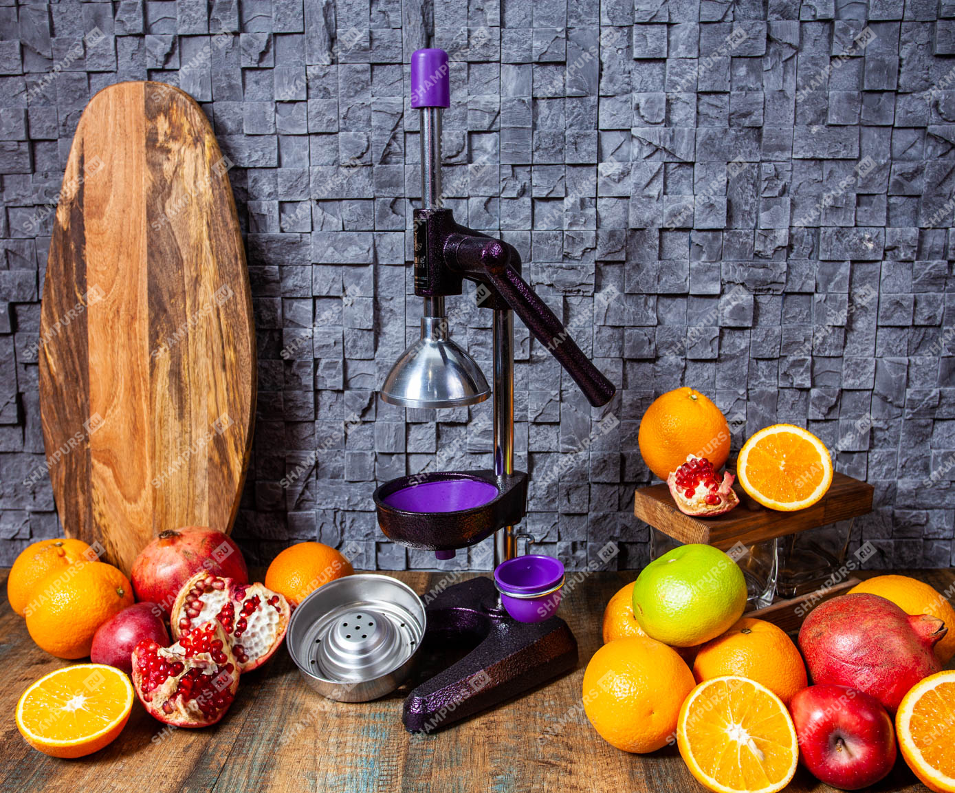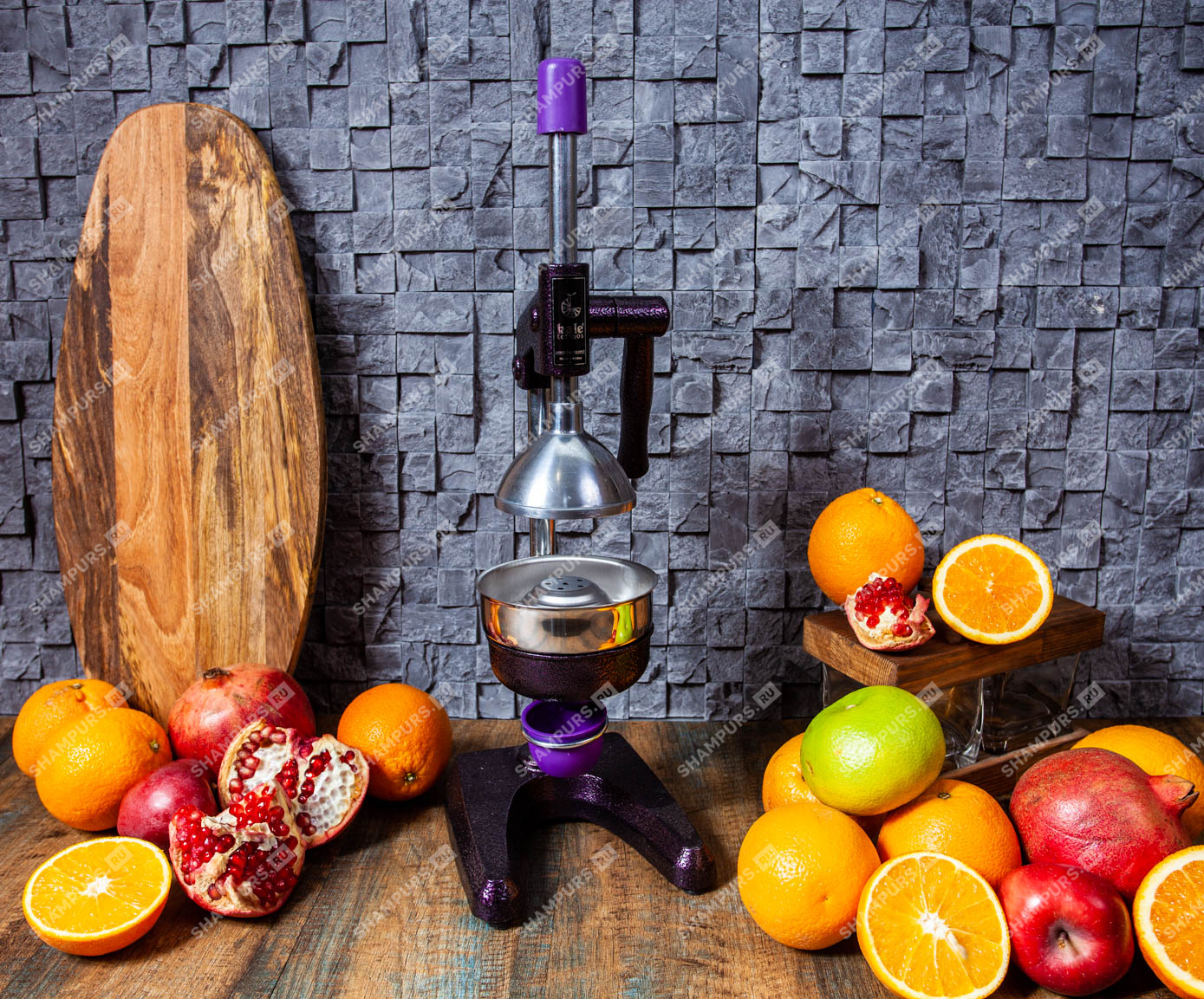 Чугунный пресс для гранатов и цитрусовых KALE 1701 пурпур Профессиональный пресс предназначен для получения сока из гранатов и цитрусовых. Подходит для домашнего использования и для мест общественного питания с увеличенной нагрузкой.