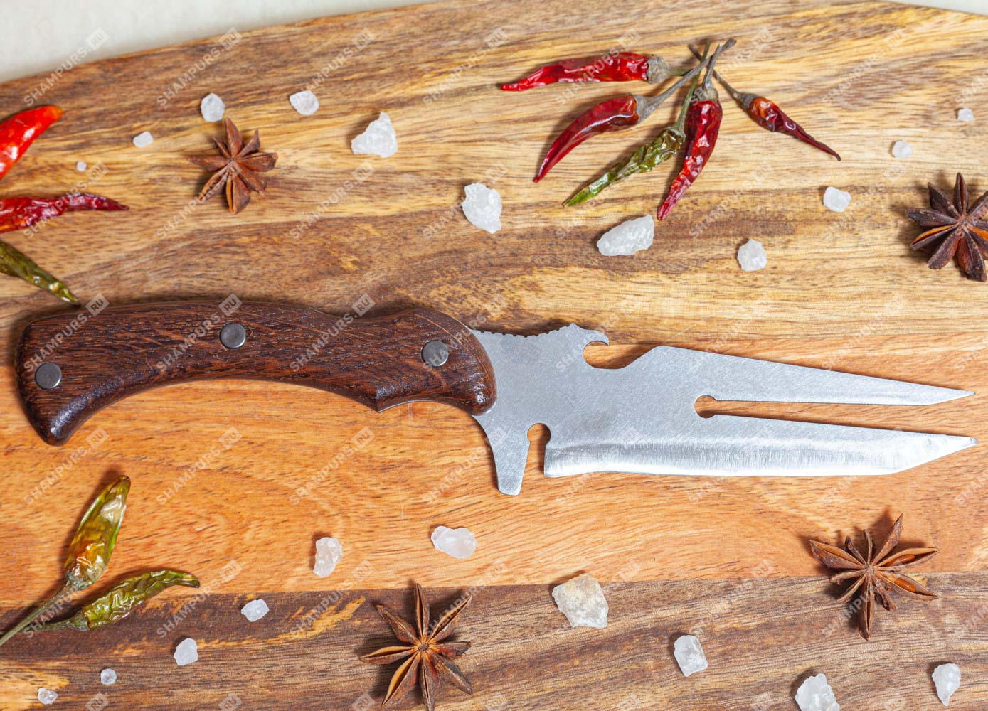 Вилка - Нож для снятия мяса с ручкой из ясеня Ножны в комплект не входят.