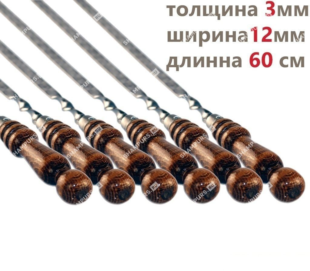 6 профессиональных шампуров с деревянной ручкой для мяса 12мм - 60см