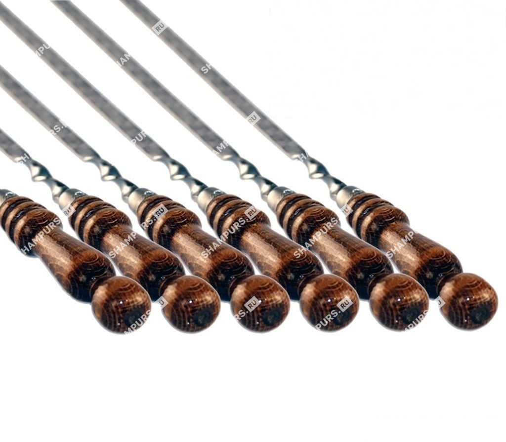 6 профессиональных шампуров с деревянной ручкой для мяса 14мм - 70см