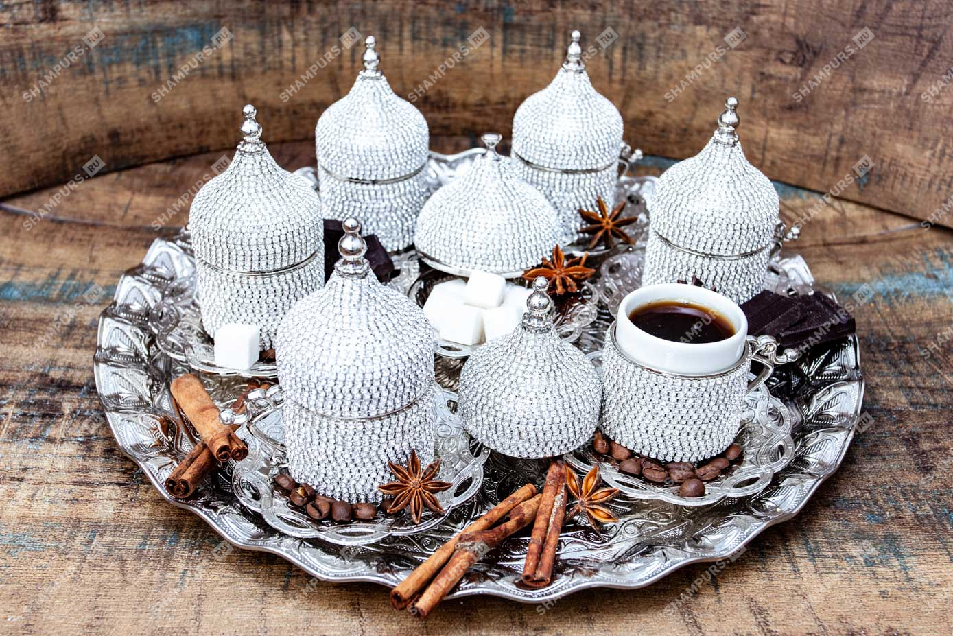 Кофейный сет с подносом на 6 персон усыпанный алмазами