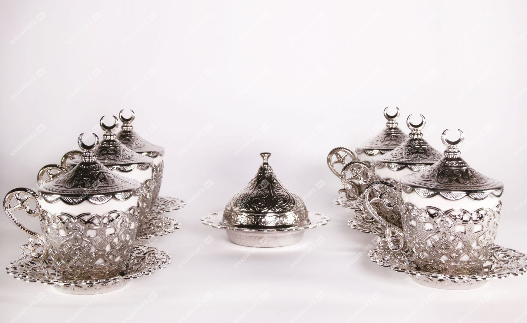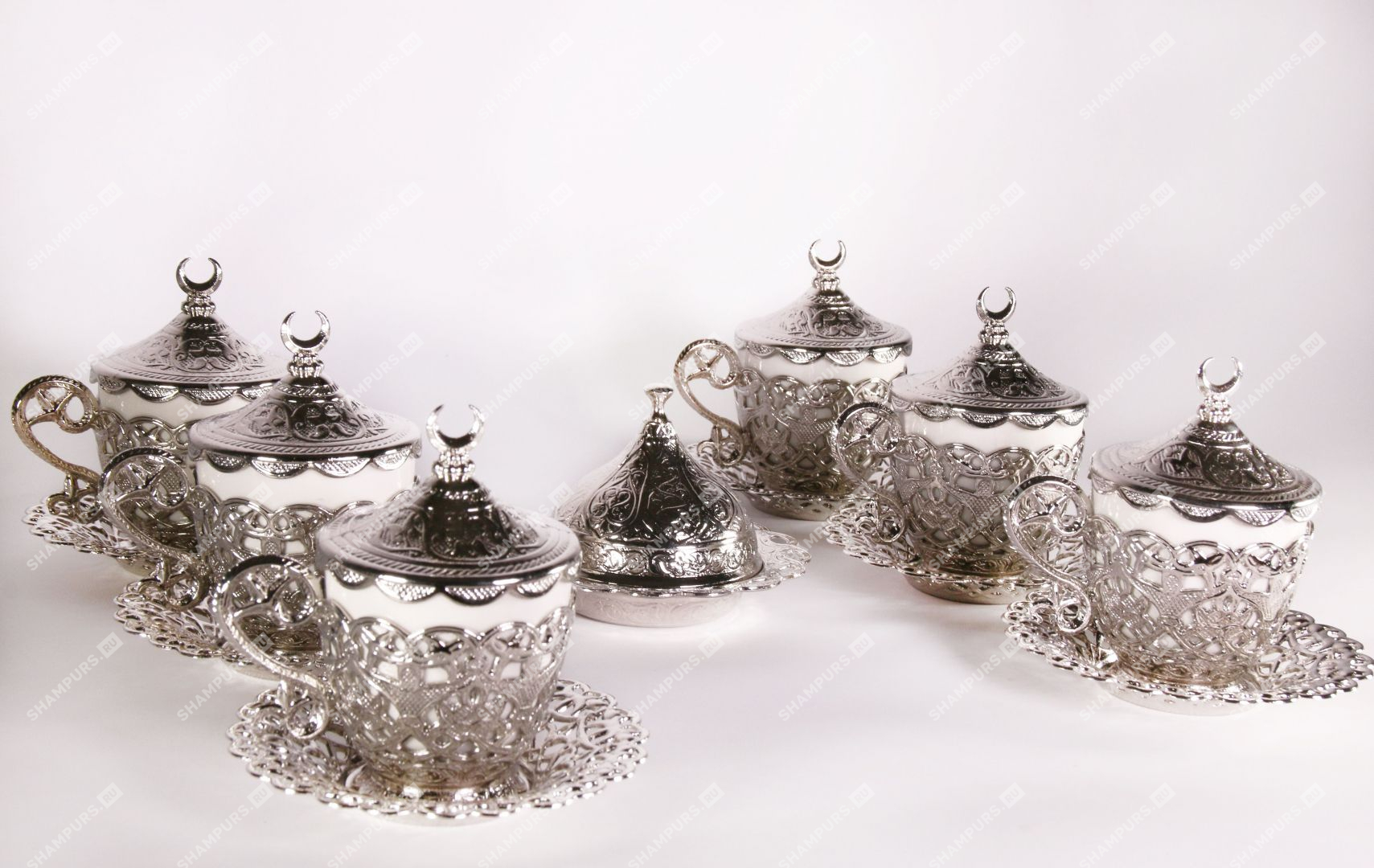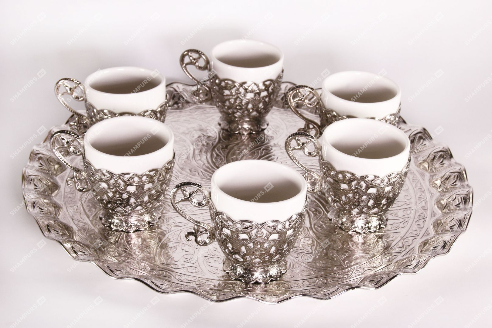 Серебряный кофейный комплект для 6 гостей на подносе