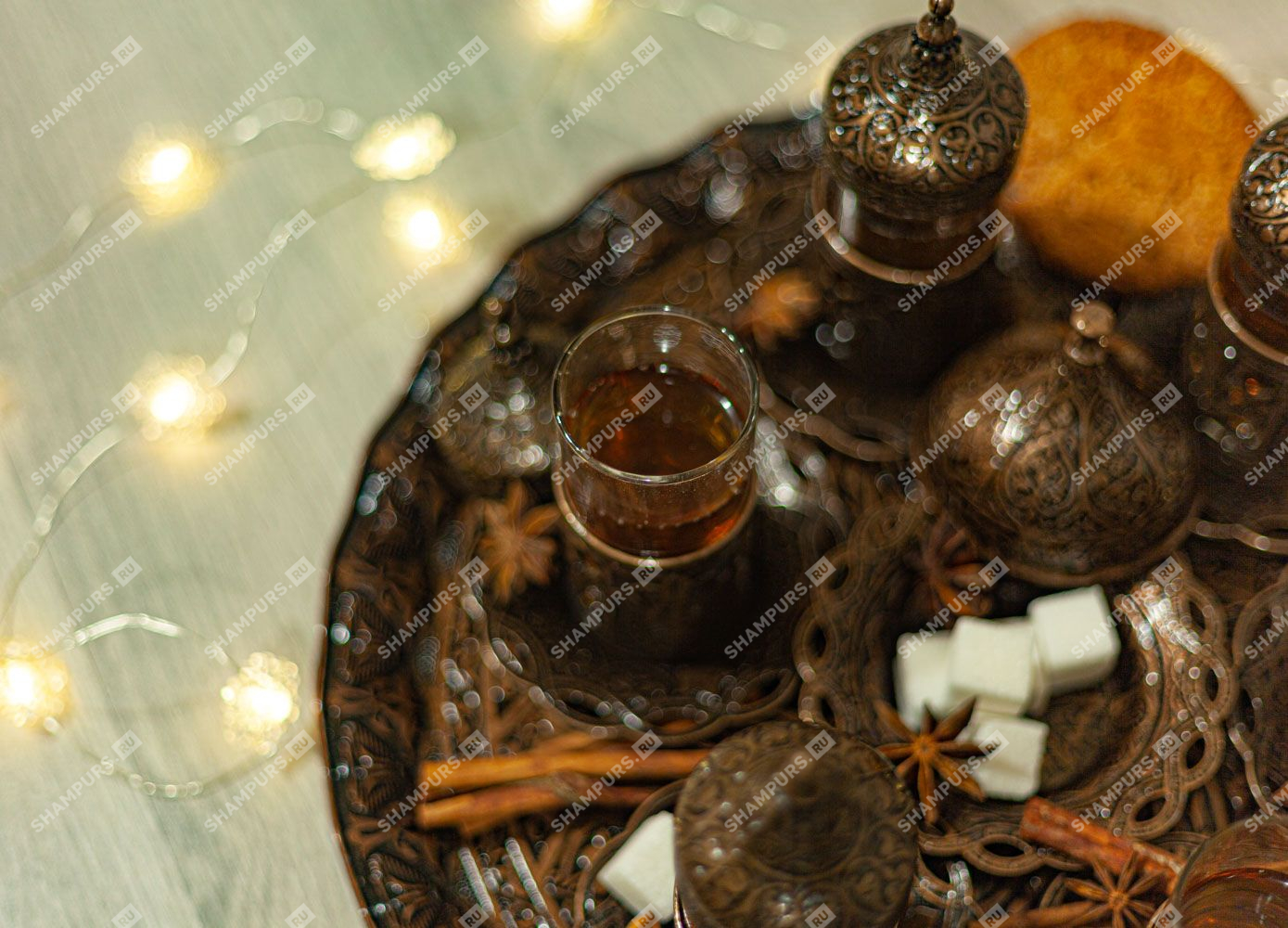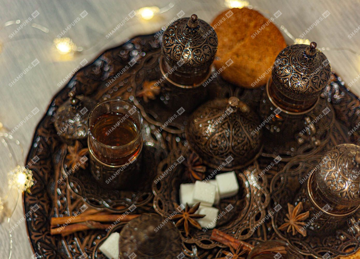 Восточный чайный сервиз на шесть персон с подносом