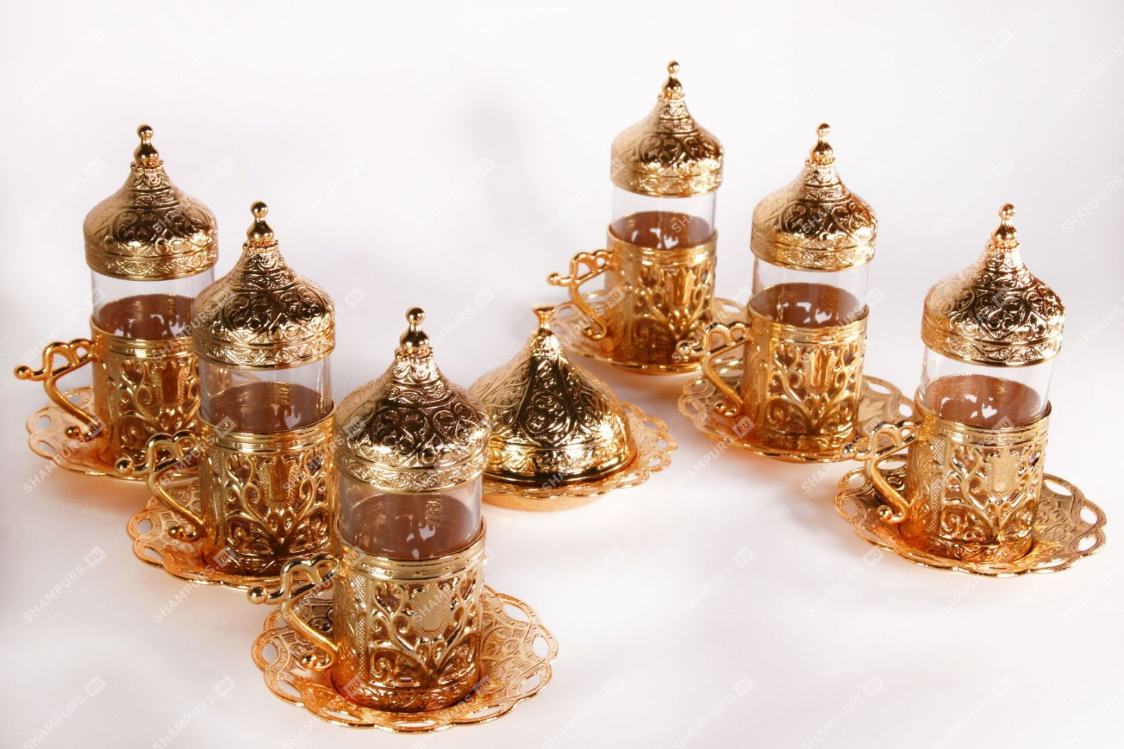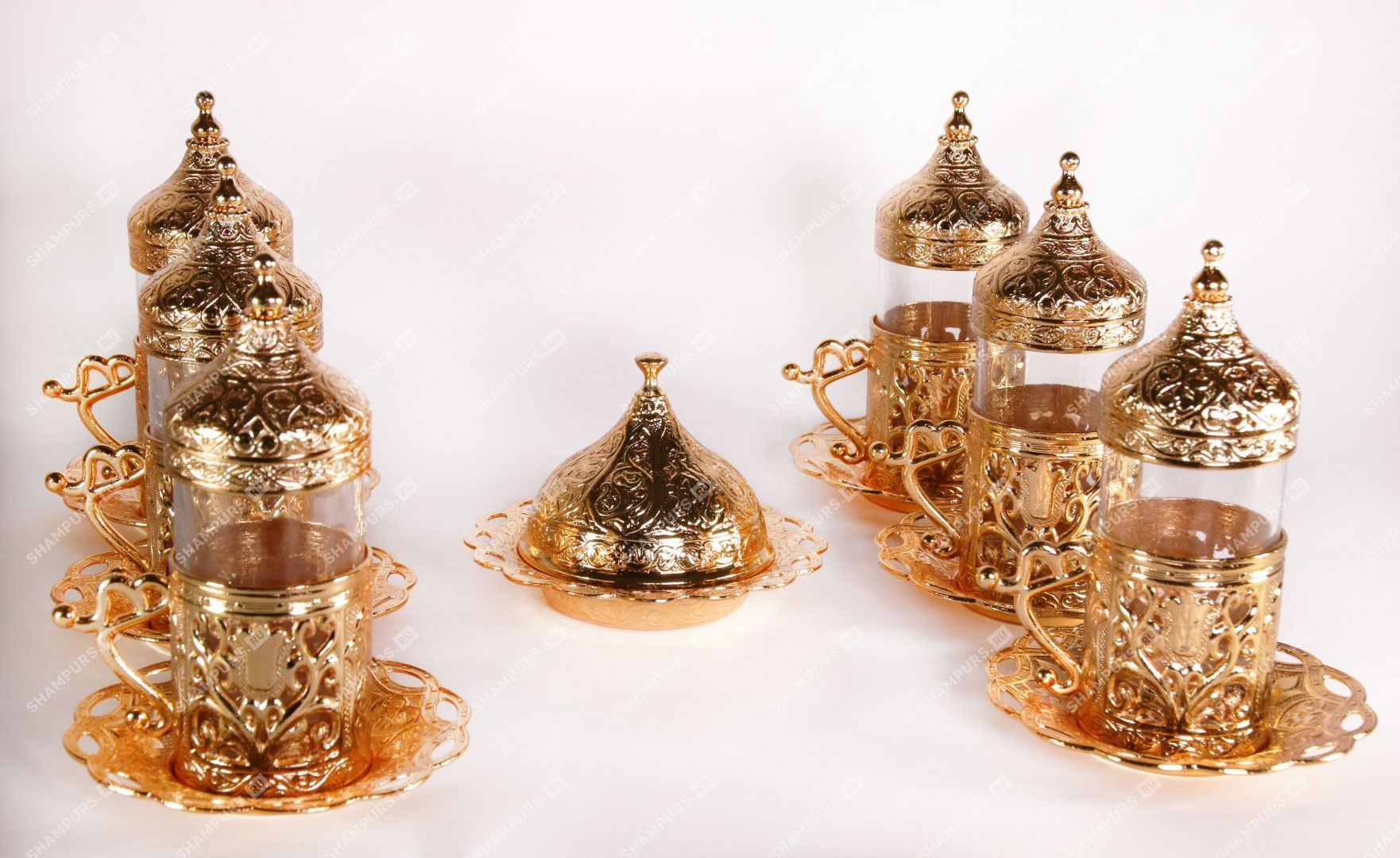Восточный чайный сервиз на шесть персон с подносом (золото)