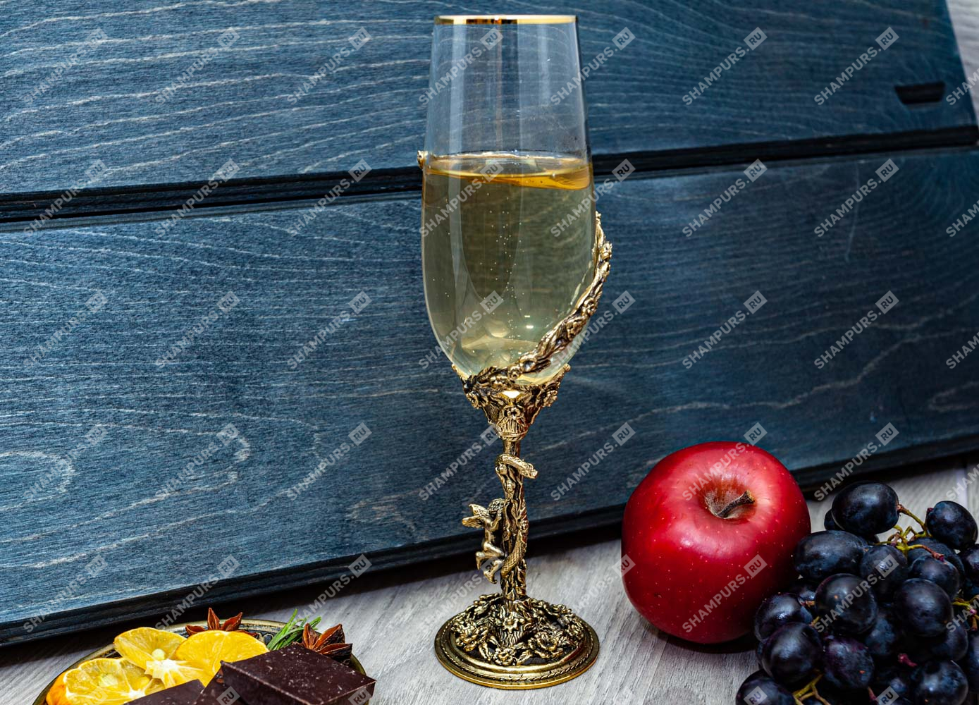 Бокал для шампанского Ангел Комплектация: 1-н бокал (стекло), основание (латунь).