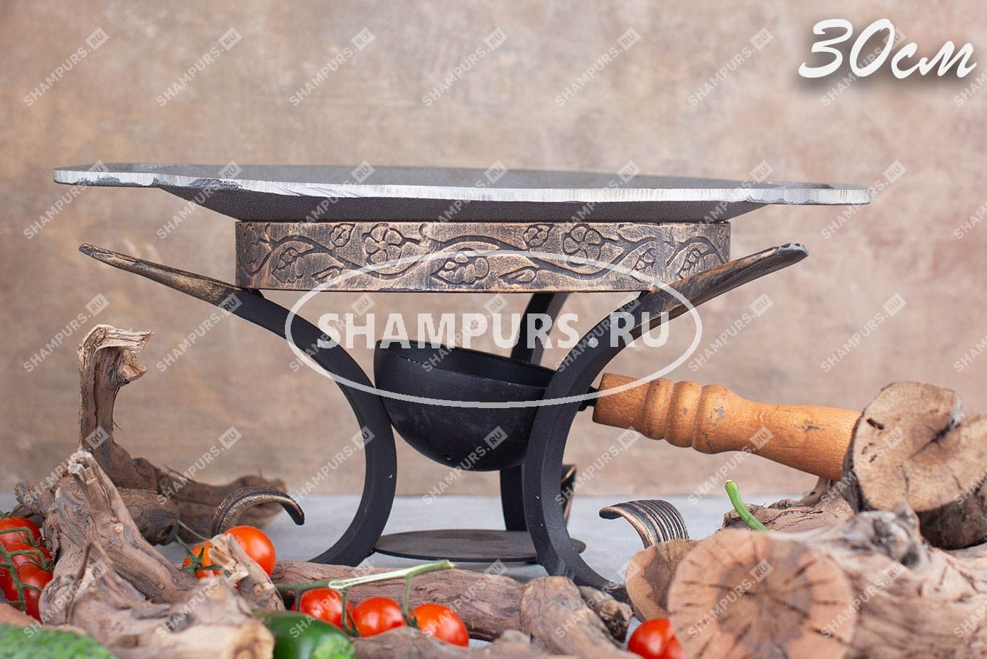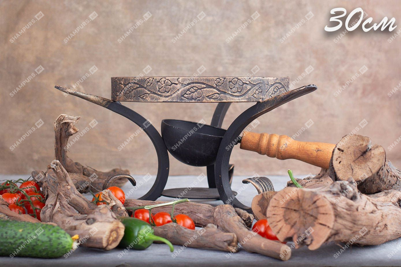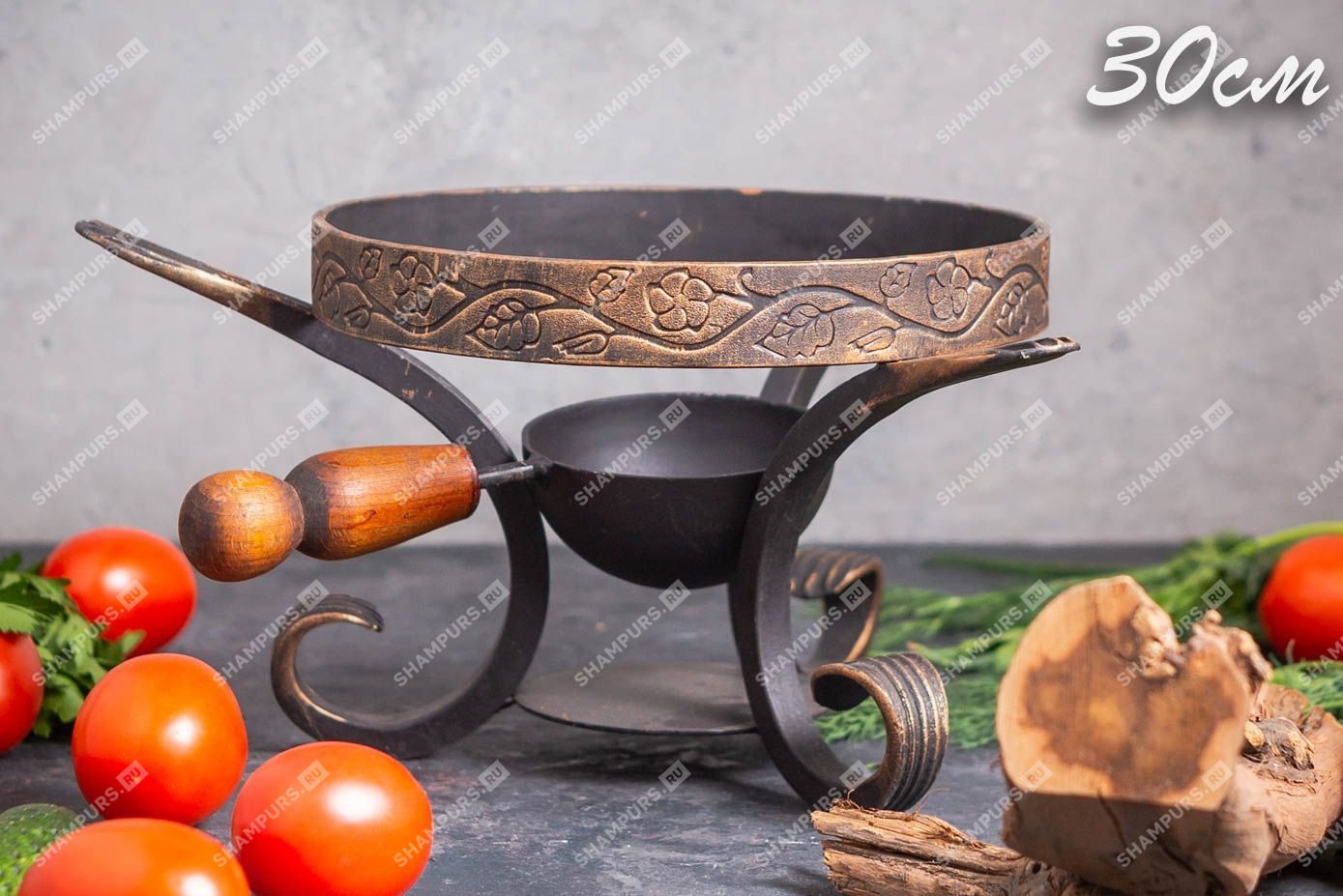 Садж чугунный 30 см на кованой подставке с зольником