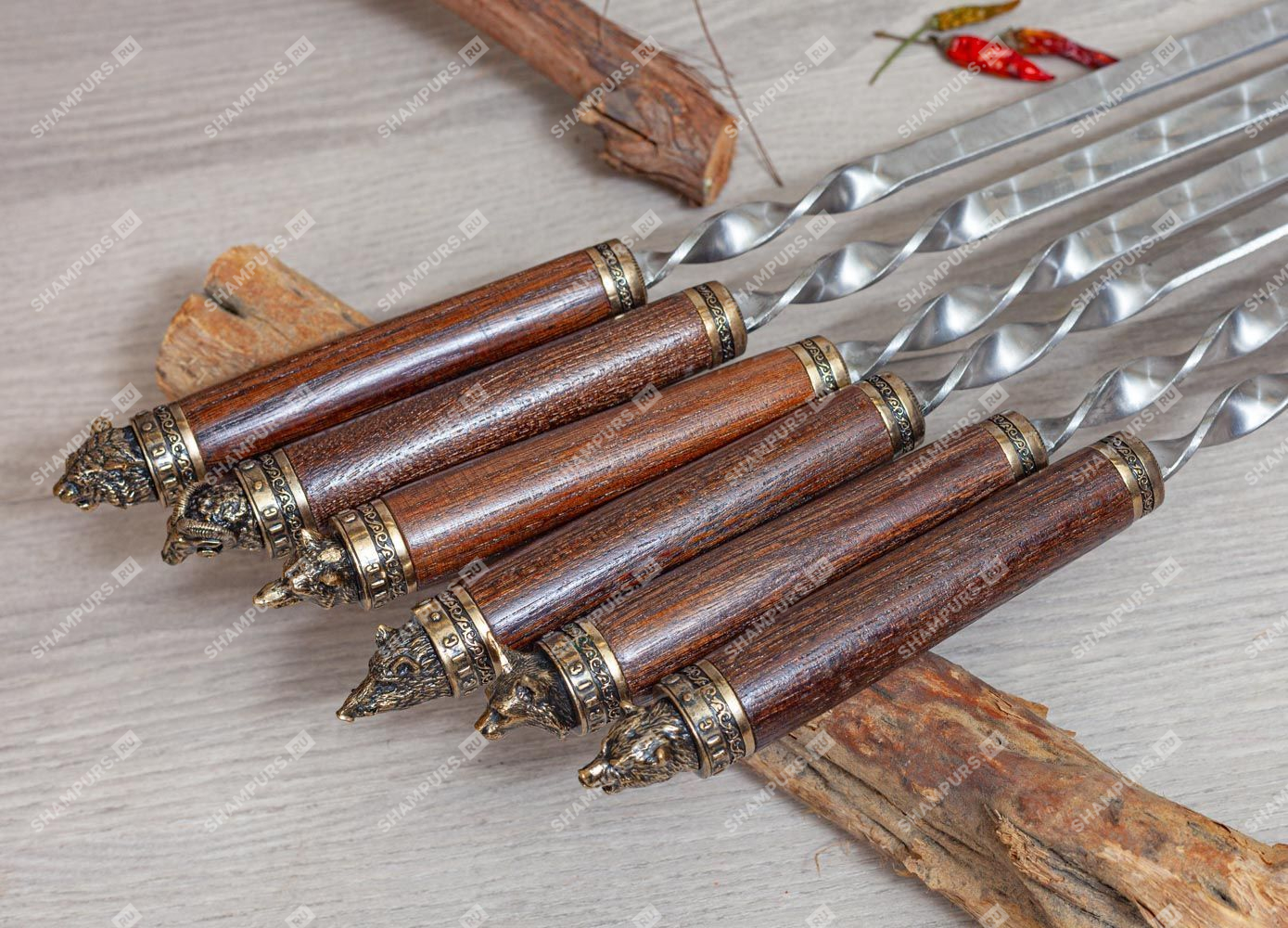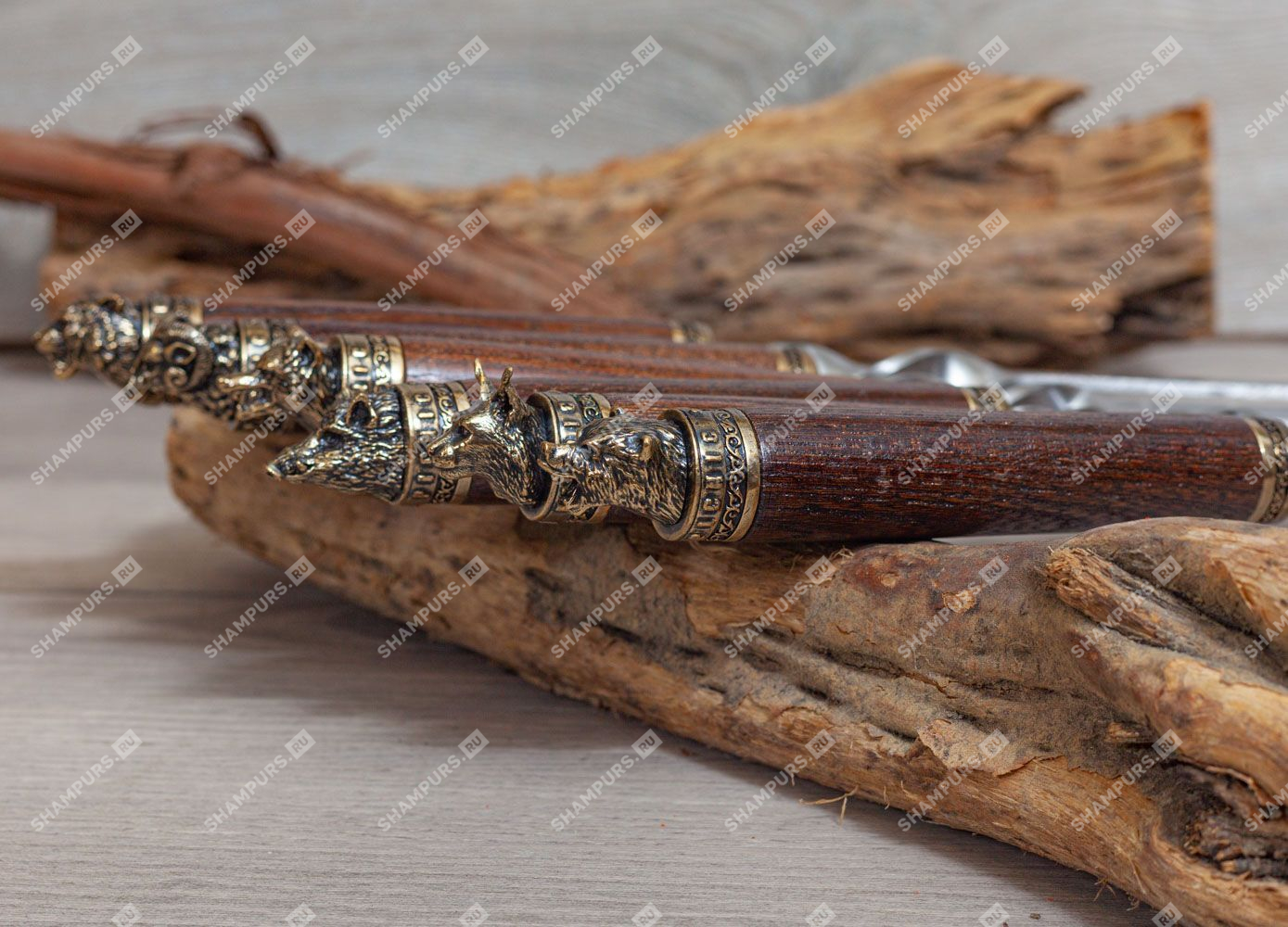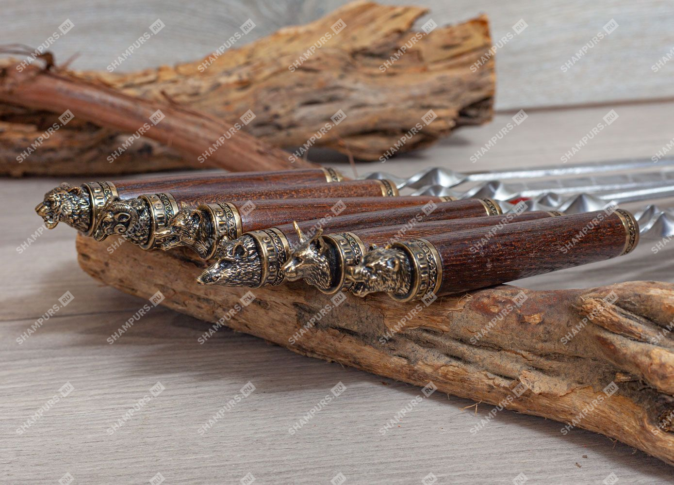 Шампура с головами зверей с бронзой
