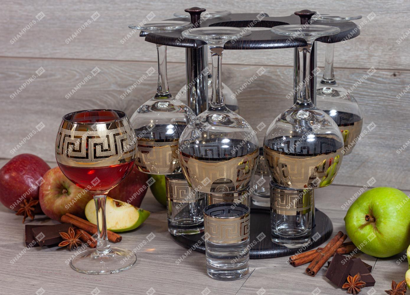 Бар Греция (Барная стойка Искушение + 6 фужеров + 6 стопок) Количество предметов в наборе: 12