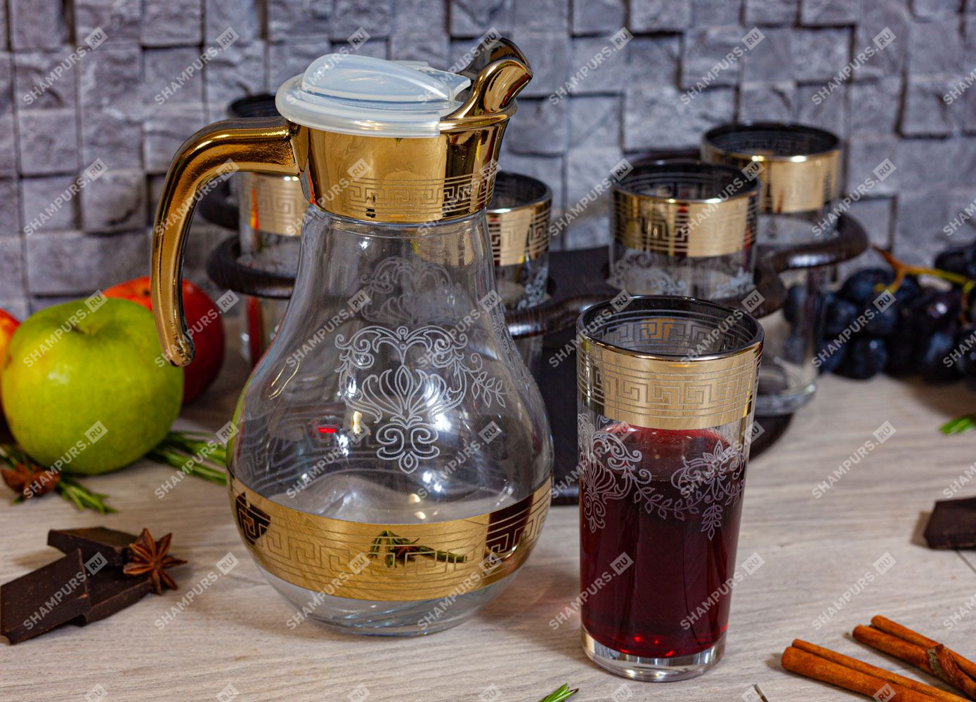 Кувшин - 1 шт; Стакан - 6 шт.