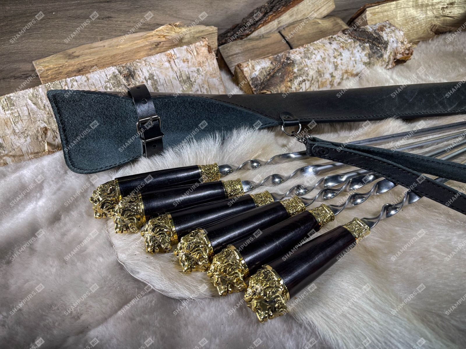 Набор шампуров Львы в чехле (черный)