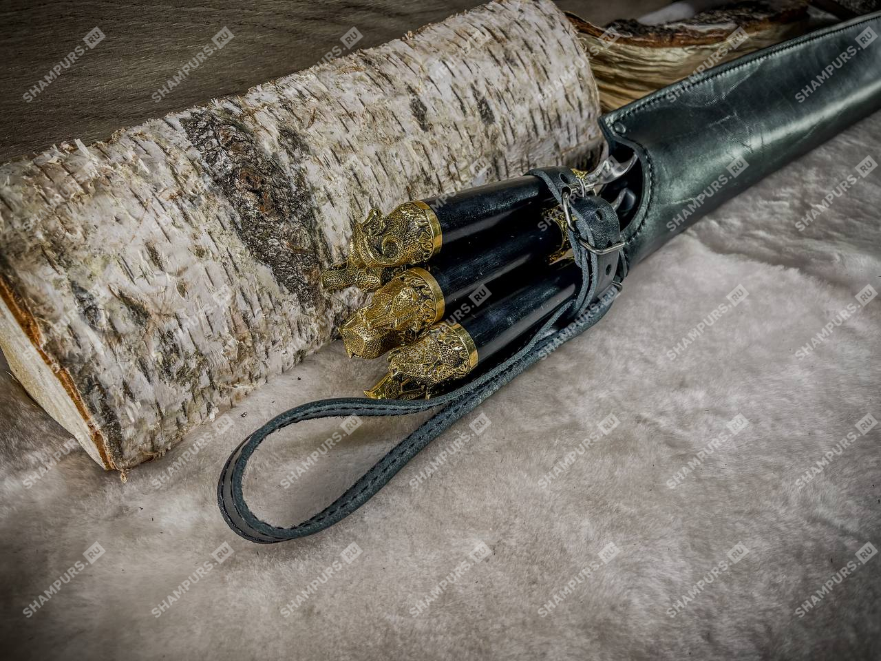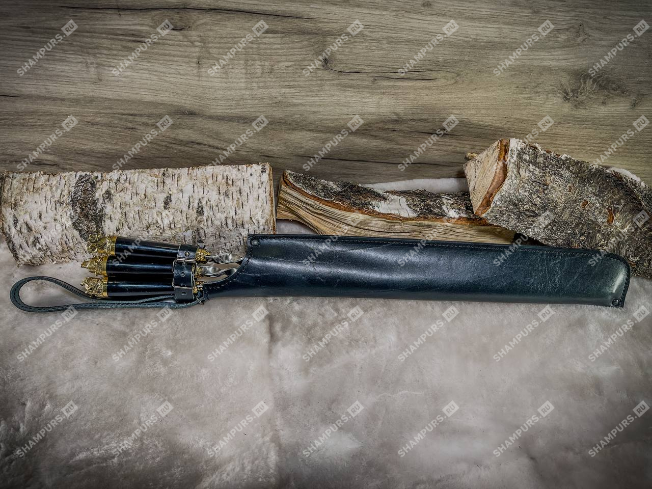Кожаный чехол-футляр для шампуров (черный)