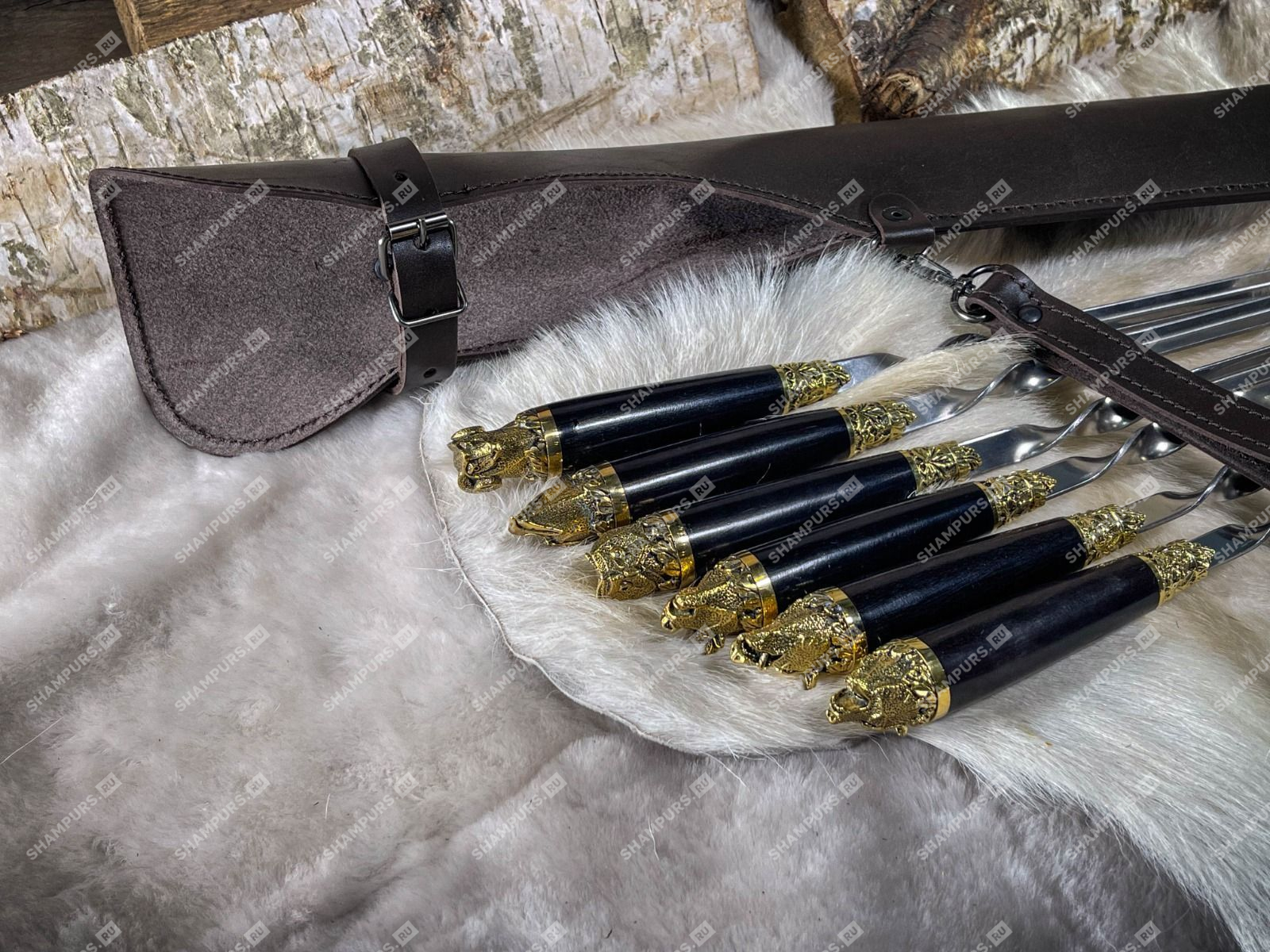 Шампуры Звери в чехле (коричневый)