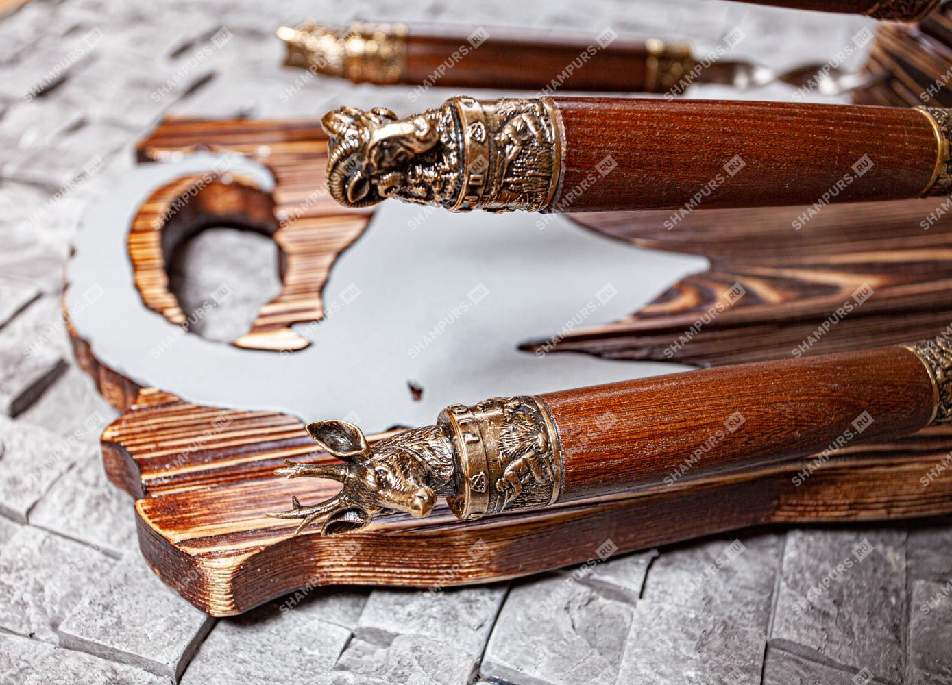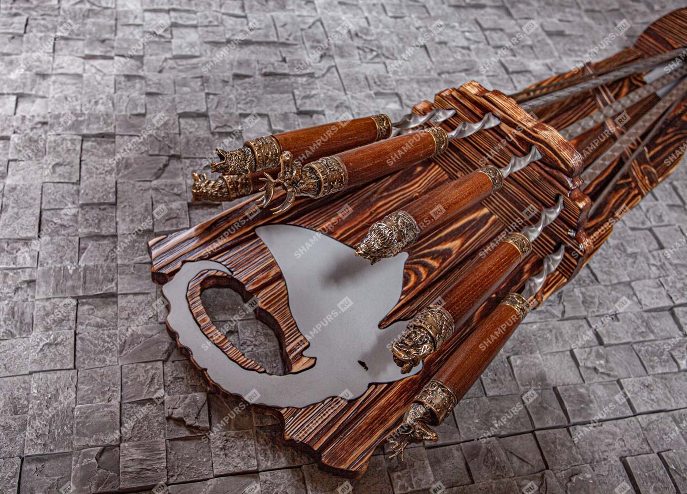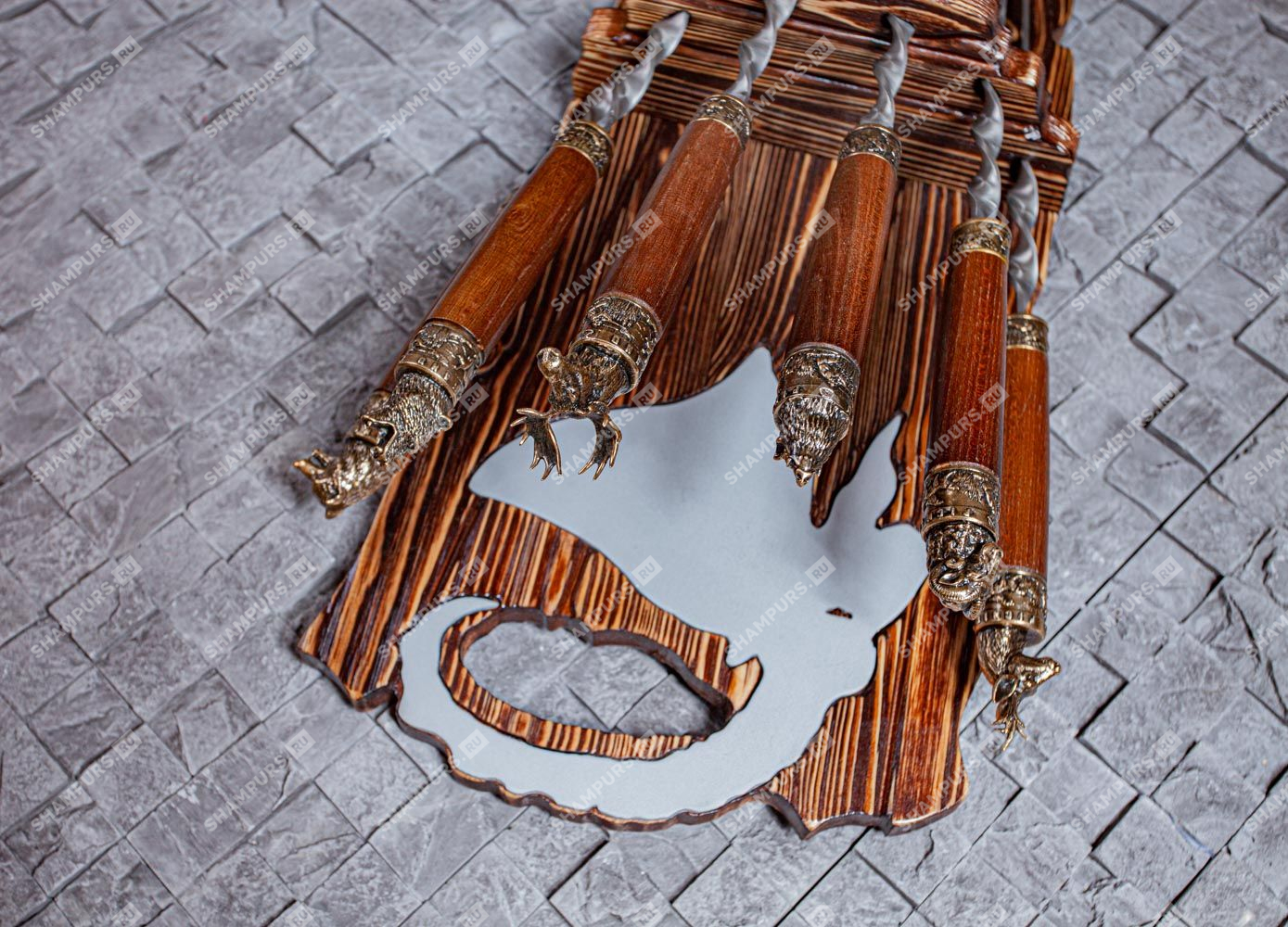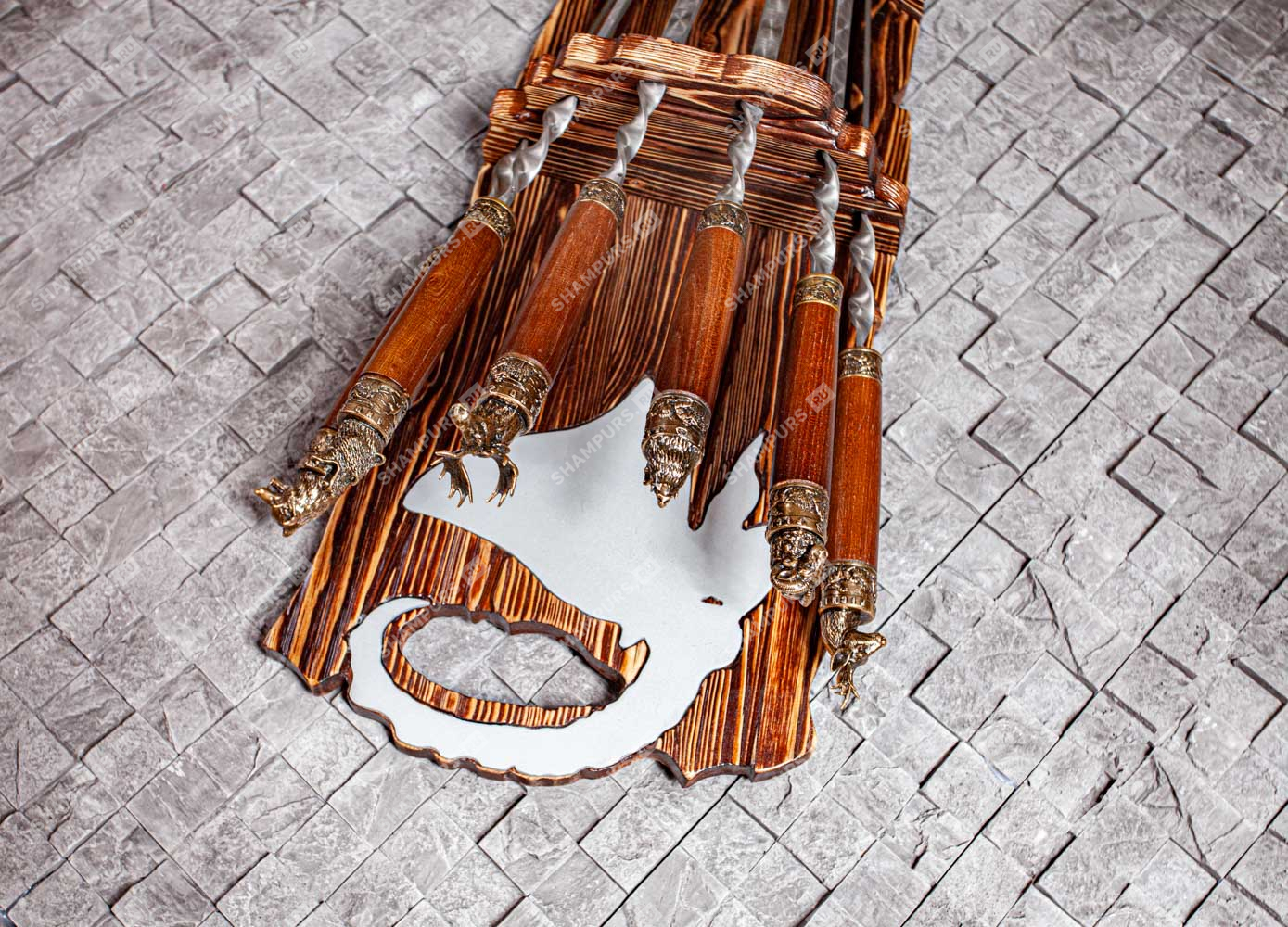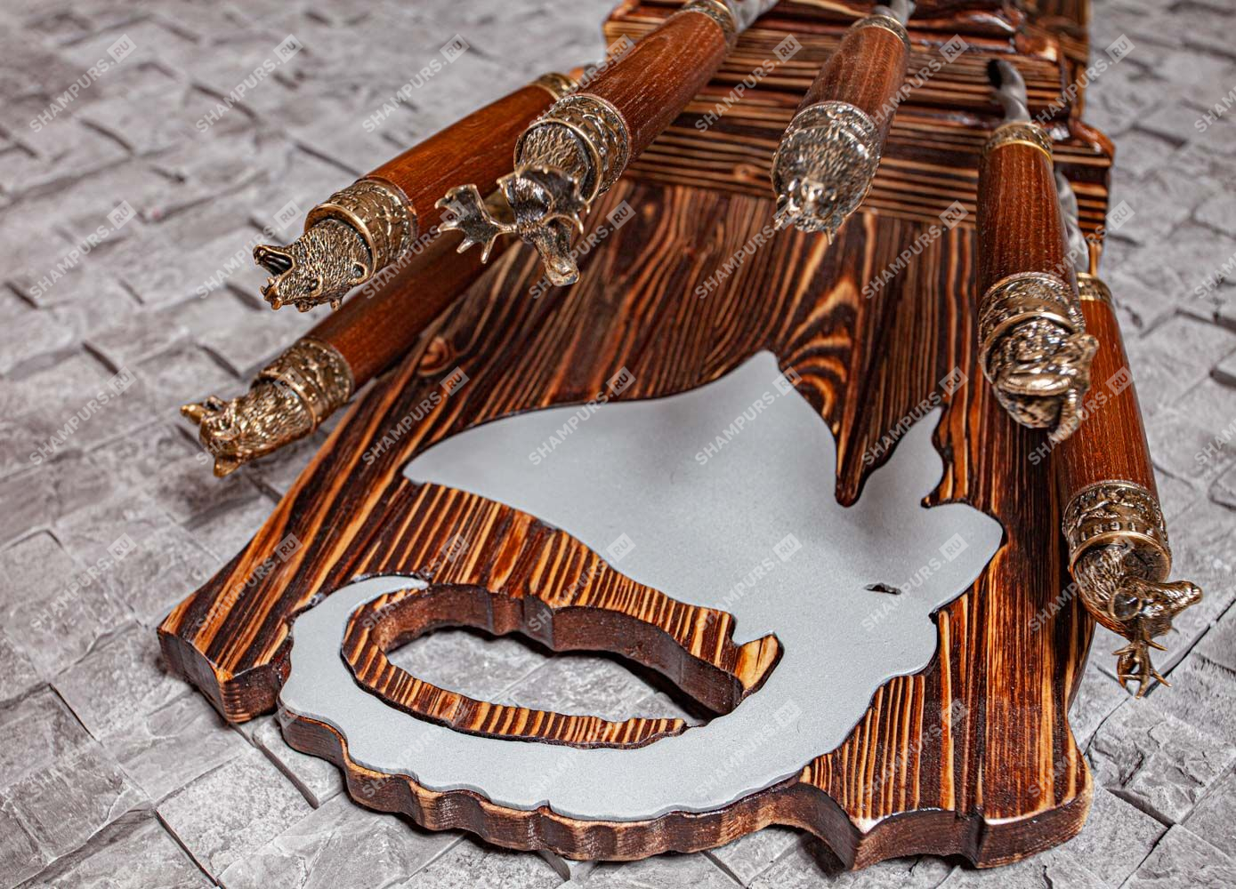 Шампура с головами зверей с бронзой