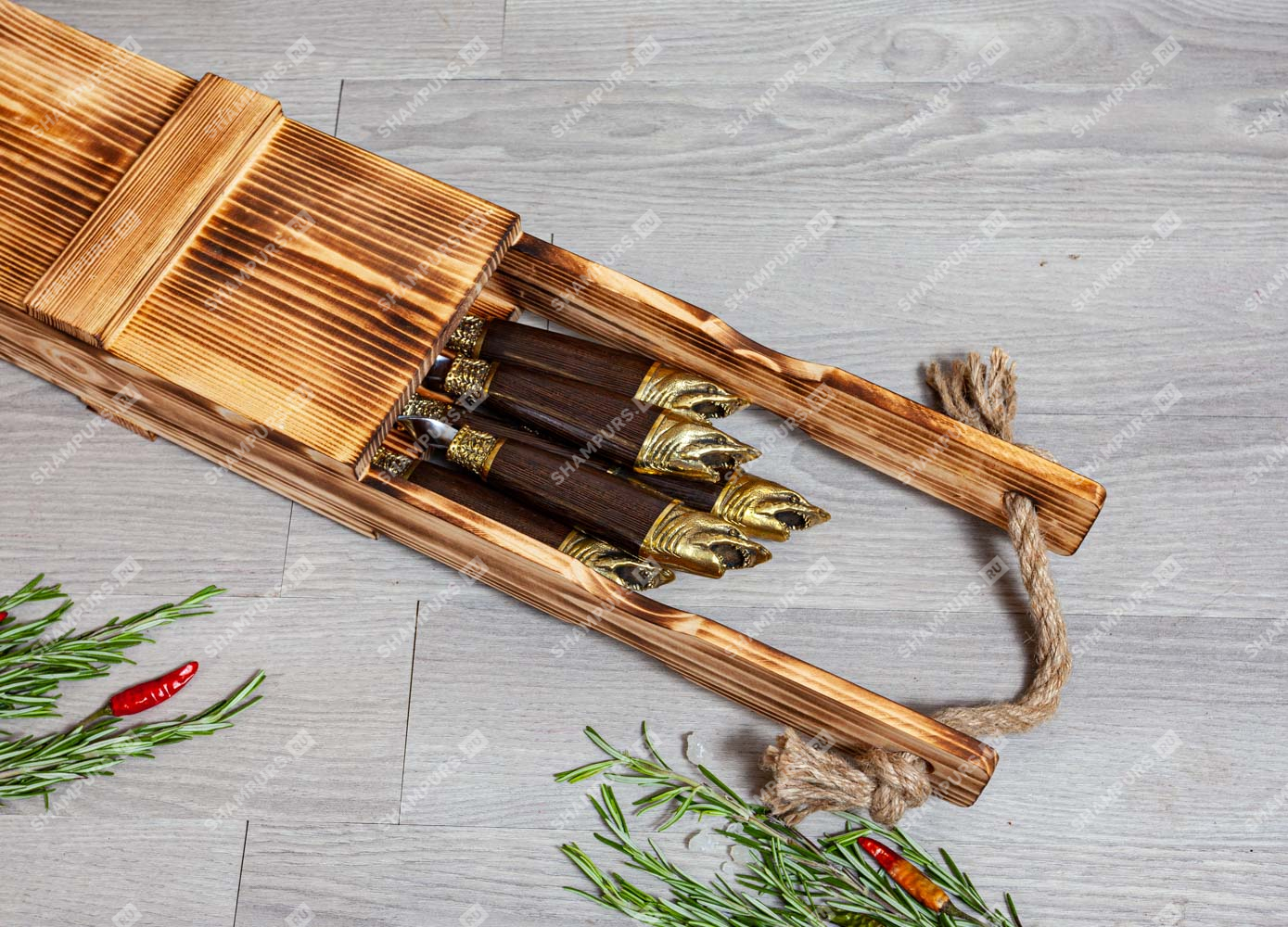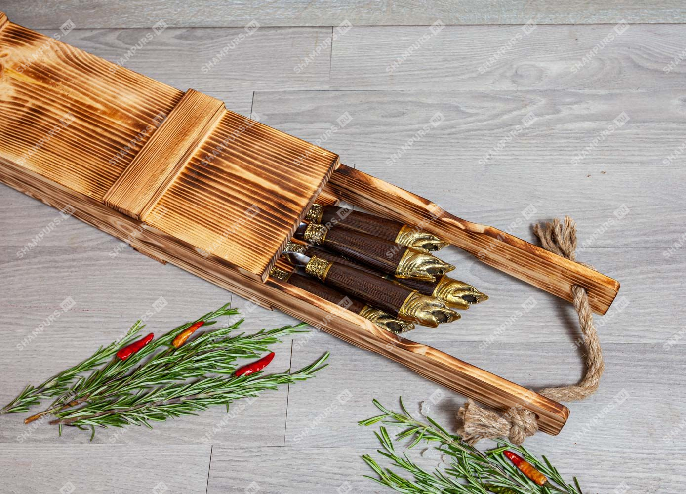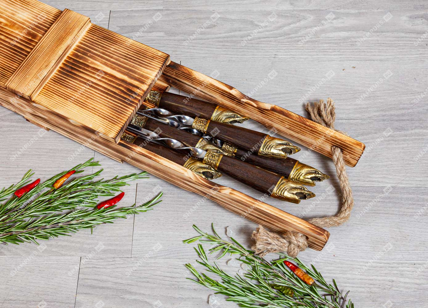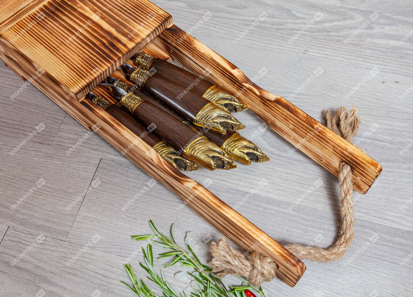 Шампуры (6шт) - латунь, художественное литье, венге, сталь нержавеющая пищевая.