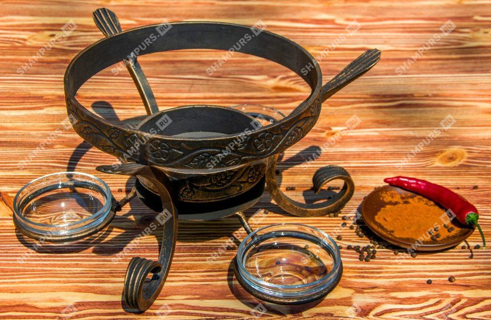 Подставка кованая с емкостями для соуса Все элементы подставок изготавливаются вручную. Узоры могут незначительно отличаться