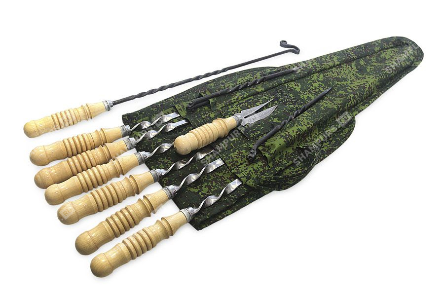 Набор шампуров Владимирский централ-6 – это уникальная возможность подчеркнуть свою индивидуальность даже в диких природных условиях. Шампура ручной работы справедливо считаются наиболее прочными и долговечными. В отличие от литых заводским способом наборов, эти проверяются мастером перед выпуском тщательно, бракованные или непрочные изделия просто не допускаются к розничному покупателю. Если вы решили купить