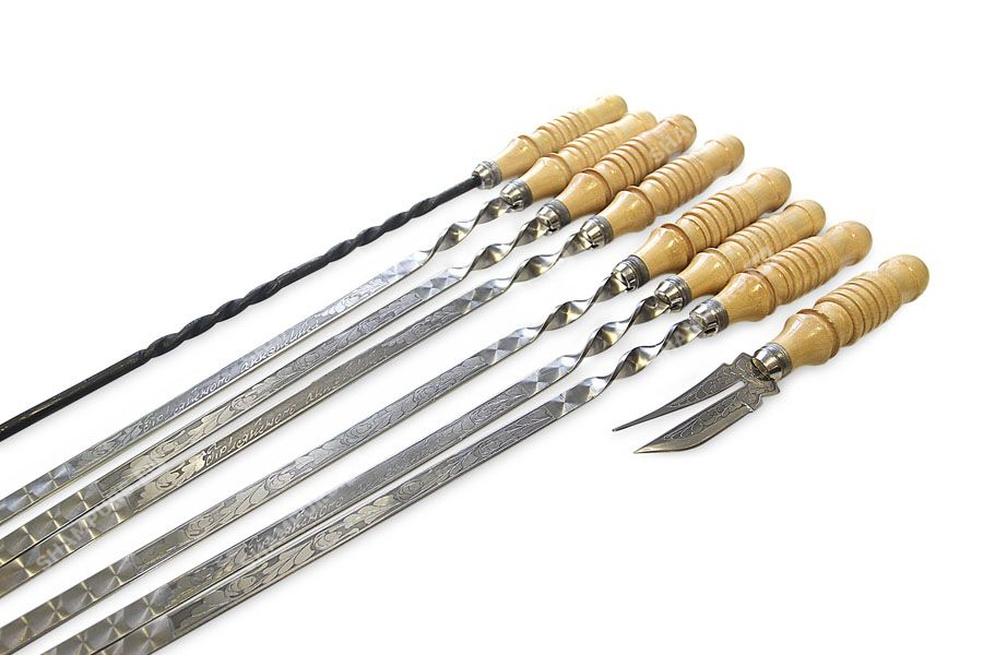 Отдых на природе…как много скрывается за этими словами. Для кого-то – дача, для других – просто маевка с близкими друзьями. Однако все мы думаем об одном – о шашлыке. Сочное мясо на природе будет вдвойне вкусней. Только вспомнить ритуал разжигания костра, общую обеспокоенность результатом. Если эти воспоминания вызывают у вас сильные и приятные эмоции, то вы – истинный любитель отдыха на природе. Для подтверждения такого статуса вам необходимы соответствующие аксессуары, например, такой набор шампуров ручной работы.