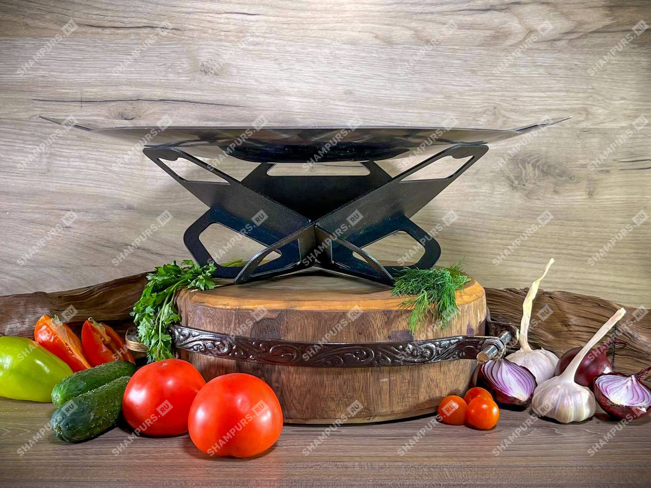 Садж из нержавеющей стали 45 см на подставке Тюльпан