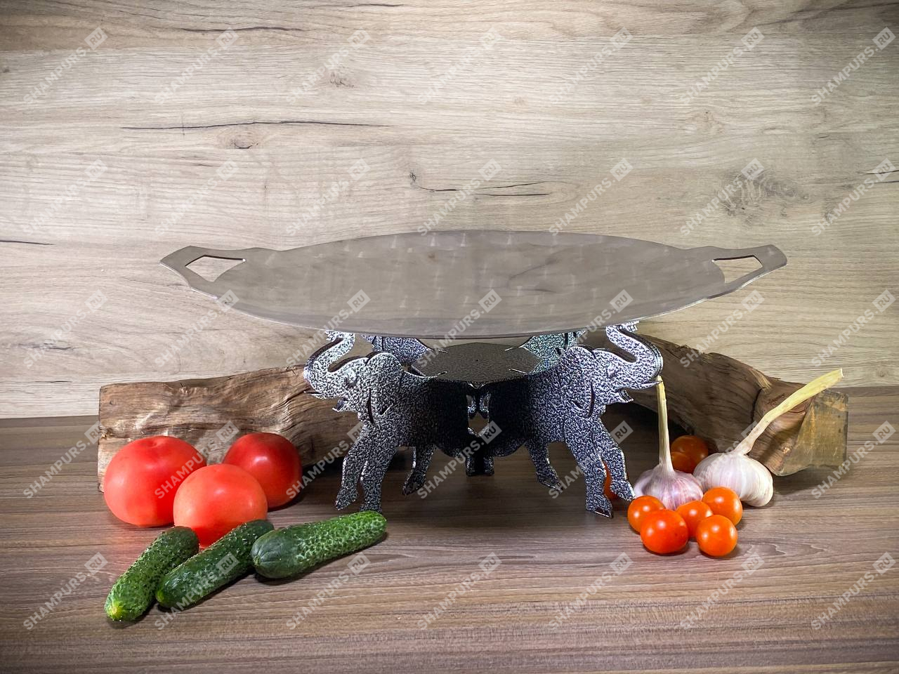 Садж из нержавеющей стали 60 см с подставкой Слоны
