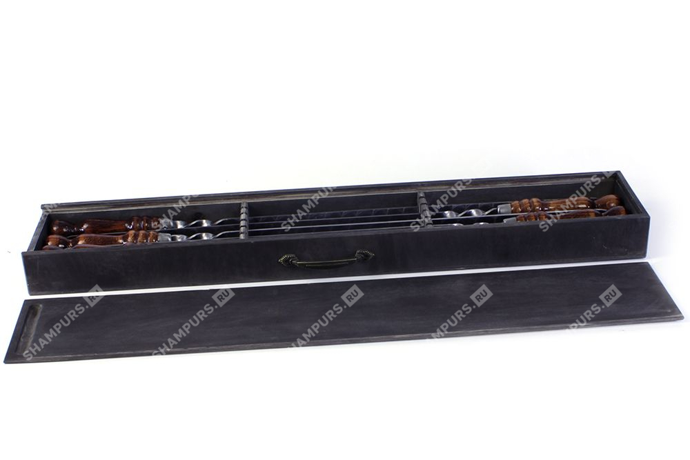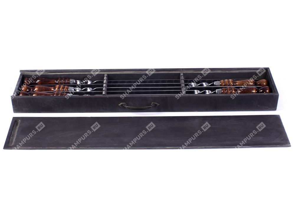 Деревянный пенал с профессиональными шампурами (эбен)