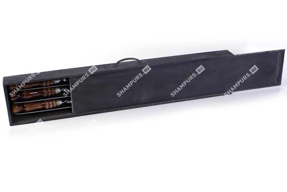 Деревянный пенал с профессиональными шампурами (эбен) Шампур может иметь разную ручку и разную длину, ширину, толщину лезвия.
